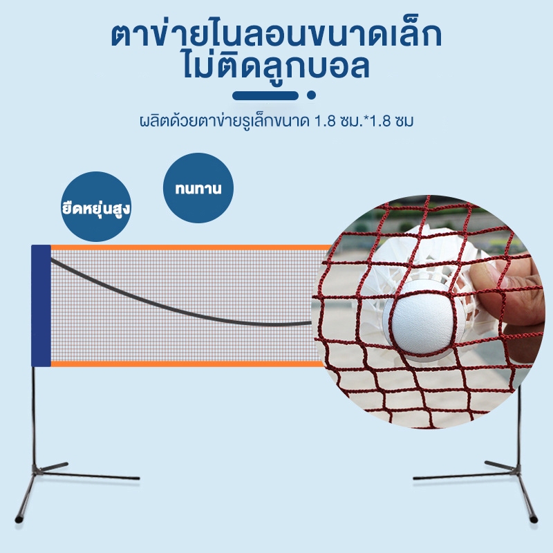 ตาข่ายแบดมินตันมาตรฐานส พกพาสะด่วกเน็ตแบดมินตัน อุปกรณ์ตาข่ายแบตมินตัน 4.1m-6.1mเหมาะสำหรับแบดมินตัน/เทนนิส/วอลเลย์บอลวง