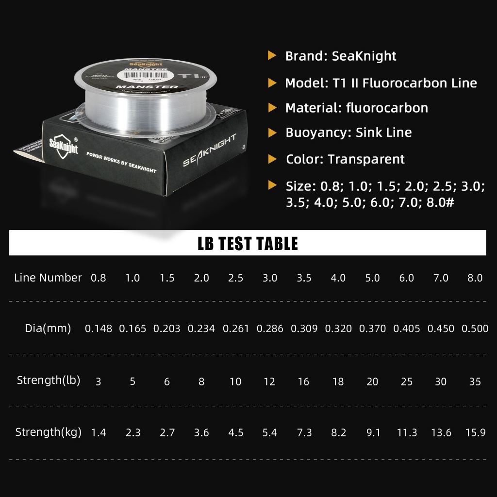 SeaKnight T1 II Fluorocarbon เคลือบสายตกปลาน้ําเค็ม 50M/100M Monofilament สายตกปลา Sinking Leader Line ตกปลาทะเล 3-100LB