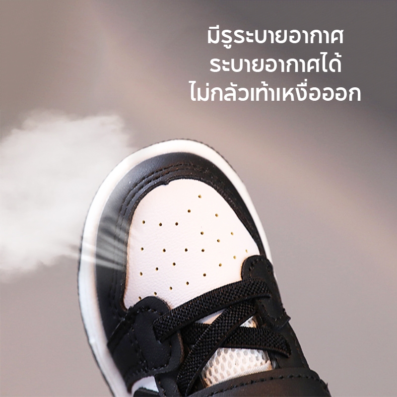 รองเท้าผ้าใบเด็ก รองเท้าเด็ก ดำ/ขาว กันลื่น ระบายอากาศได้ นุ่มสบาย สำหรับเด็กชายและเด็กผู้หญิง🌻การจัดส่งที่รวดเร็ว