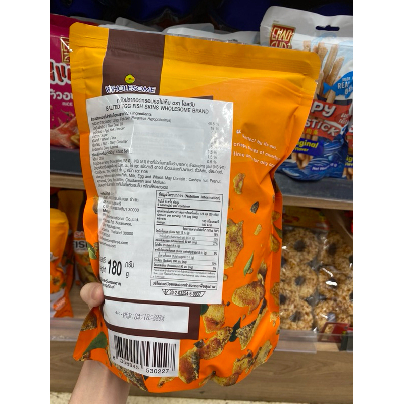 [ส่งด่วน] (แพ็ค 2 ห่อใหญ่) WHOLESOME SALTED EGG FISH SKINS 145 g. หนังปลาทอดกรอบรสไข่เค็ม ตราโฮลซัม