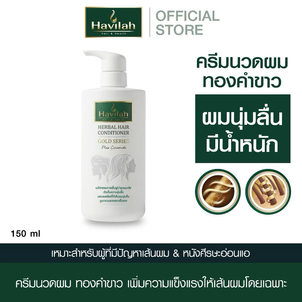 เเชมพูแก้ผมร่วง150ml+ครีมนวดบำรุงผม150ml แก้ผมร่วงผมบาง บำรุงผมนุ่ม ฮาวิล่าห์|Conditioner Havilah+Shampoo