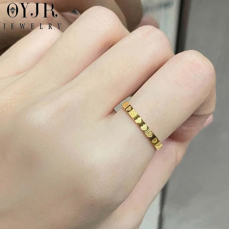 OYJR แหวนสแตนเลส แหวนแฟชั่น รูปแบบหัวใจสำหรับผู้หญิง