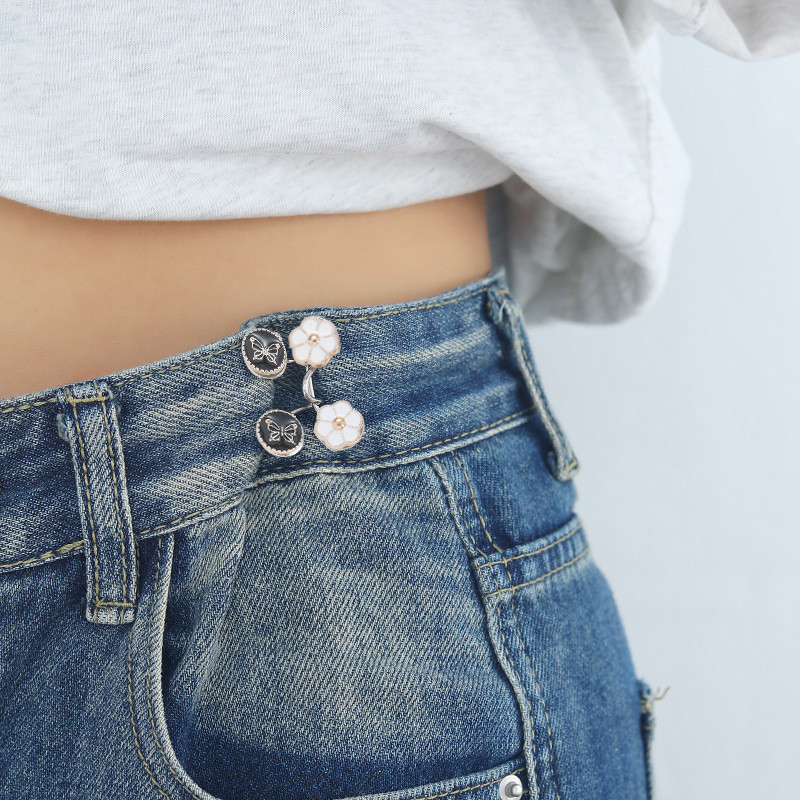 ในไทย💖ตะขอกางเกง ตะขอโลหะ ลายดอกไม้ ไม่มีรอยต่อ เข็มขัดโลหะสั้นปรับระดับได้สําหรับแกะชิ้นส่วนกางเกงยีนส์เข็มขัดCOD