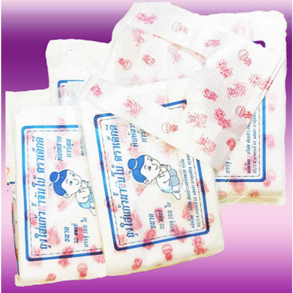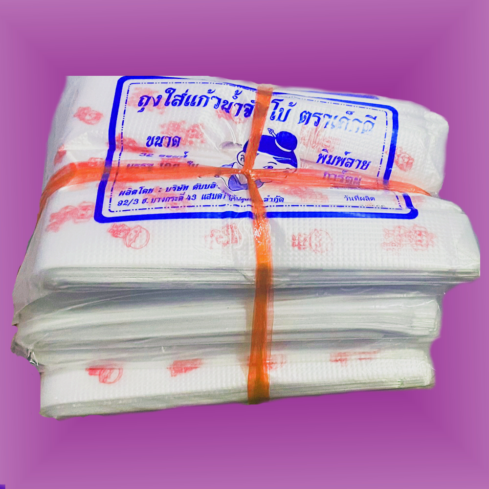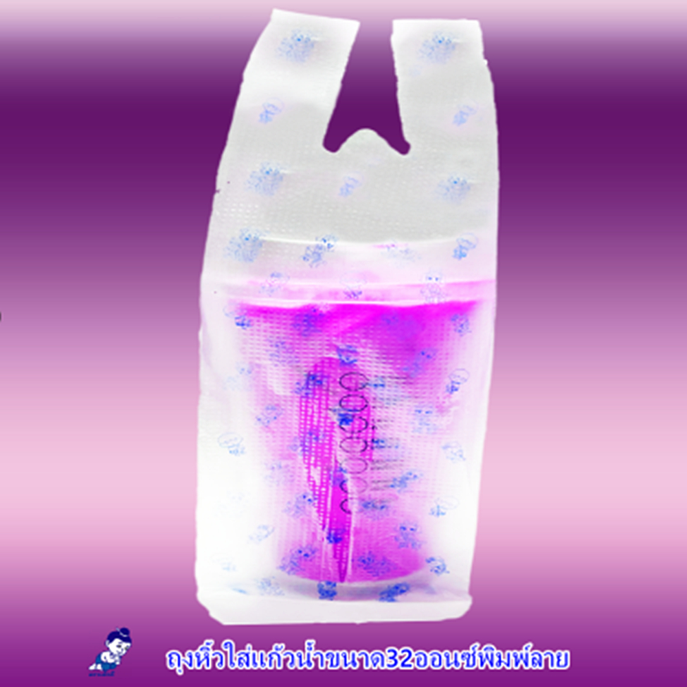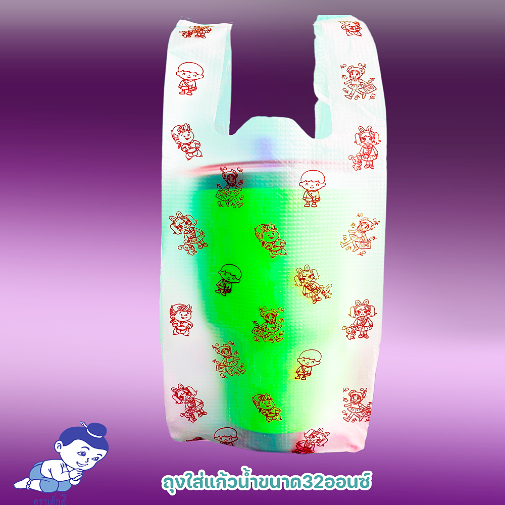 ตราเด็กดีถุงหิ้วใสใส่แก้วน้ำพิมพ์ลายสีแดงขนาดแก้ว32ออนซ์บรรจุ1ห่อ/100ใบ