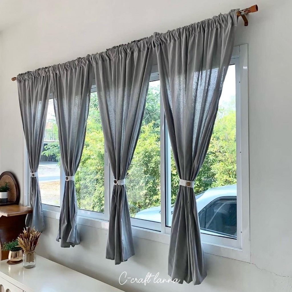 🍂ผ้าม่านผ้าฝ้าย ผ้าม่านวินเทจ ผ้าฝ้ายพื้นเมือง สีเทาอ่อน สีสันสดใส เหมาะแต่งบ้านสุดๆ