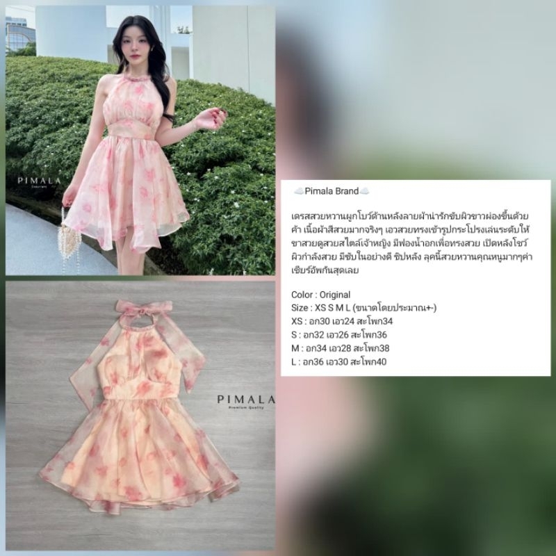 ชุดคุณภาพดี💯ตรงปก✨ร้านนี้มีพร้อมส่งเลย✅ไม่ต้องเช็ค*ส่งไว💐เดรสผูกโบว์หลังคอกระโปรง ชุดออกงานสี โอรส นู๊ด ชมพู Pimala