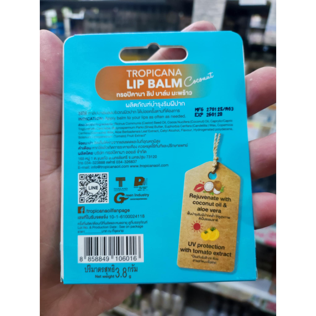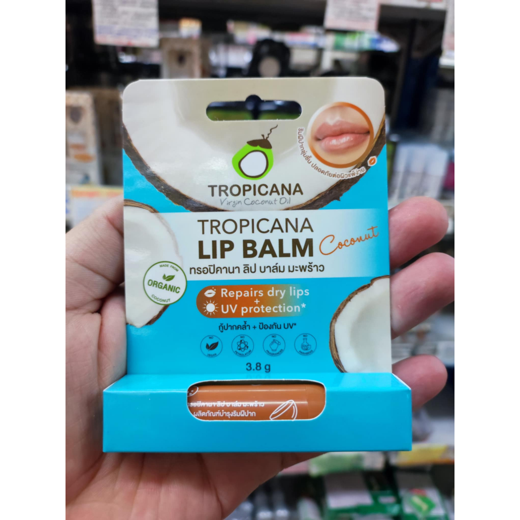 ทรอปิคานา ลิปบาล์มบำรุงริมฝีปากน้ำมันมะพร้าวแบบแท่ง Tropicana สูตร NON PRESERVATIVE กลิ่น COCONUT ขนาด 3.8 ก.