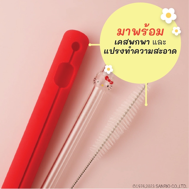 Goodglas หลอดลายคิตตี้ KITTY straw-RED ลิขสิทธิ์แท้จากญี่ปุ่น มาพร้อมเคสพกพา และ แปรงทำความสะอาด