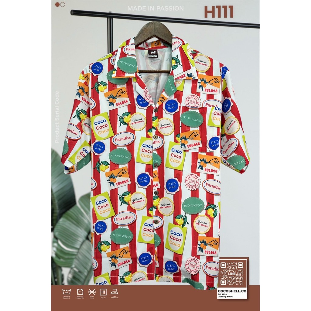 พร้อมส่งจากไทย เสื้อฮาวาย Cocoshell ผ้าไหมอิตาลี ไม่ยับไม่ร้อนไม่ต้องรีด ไม่ระคายผิว ลายโลโก้สีสันสดใส H111