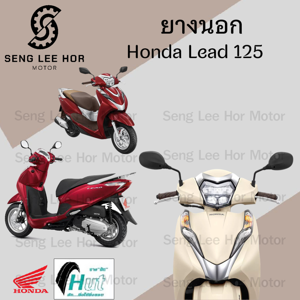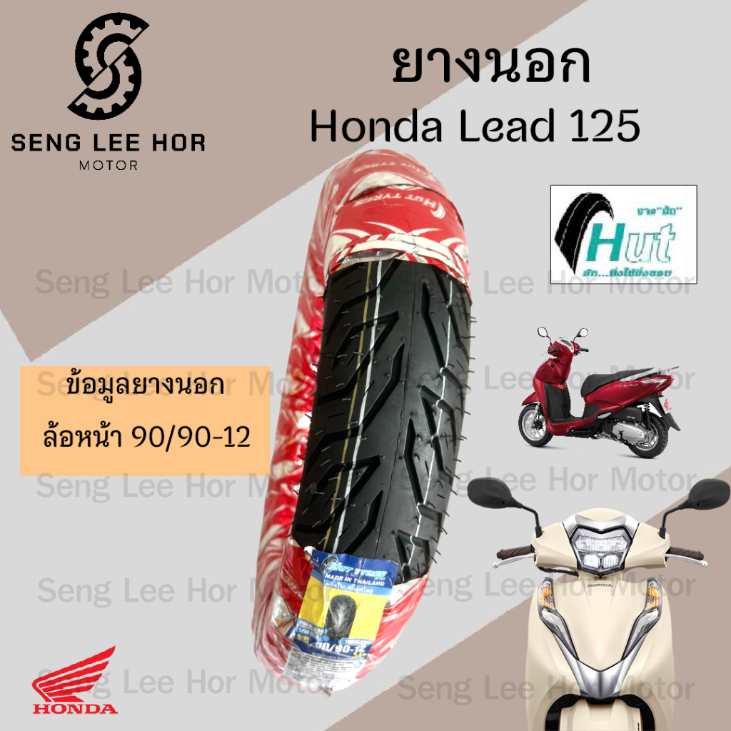 LEAD 125 ยางนอกแบบไม่ใช้ยางใน HONDA LEAD125 Hut แดง H 524 ยาง Lead 125 หน้า90/90-12 HUT หลัง100/90-10 หลีด 125 Lead125