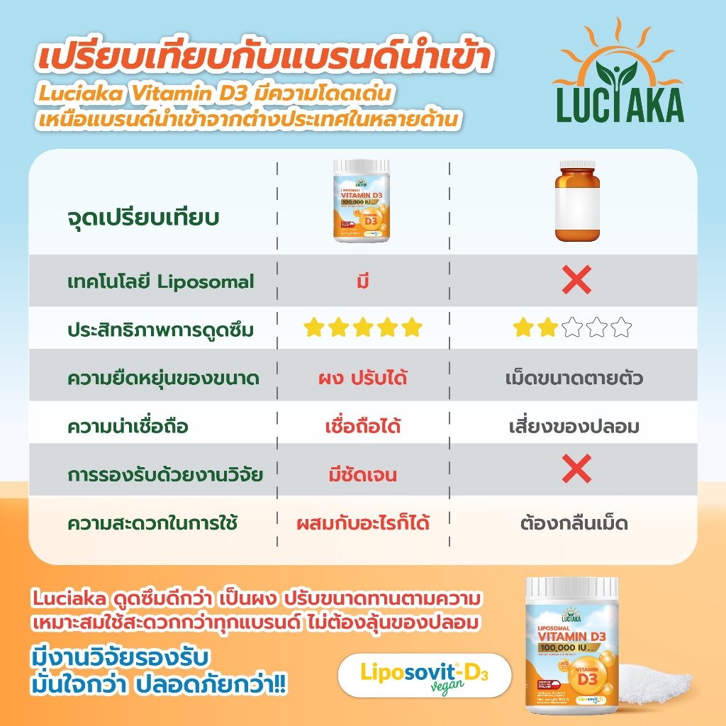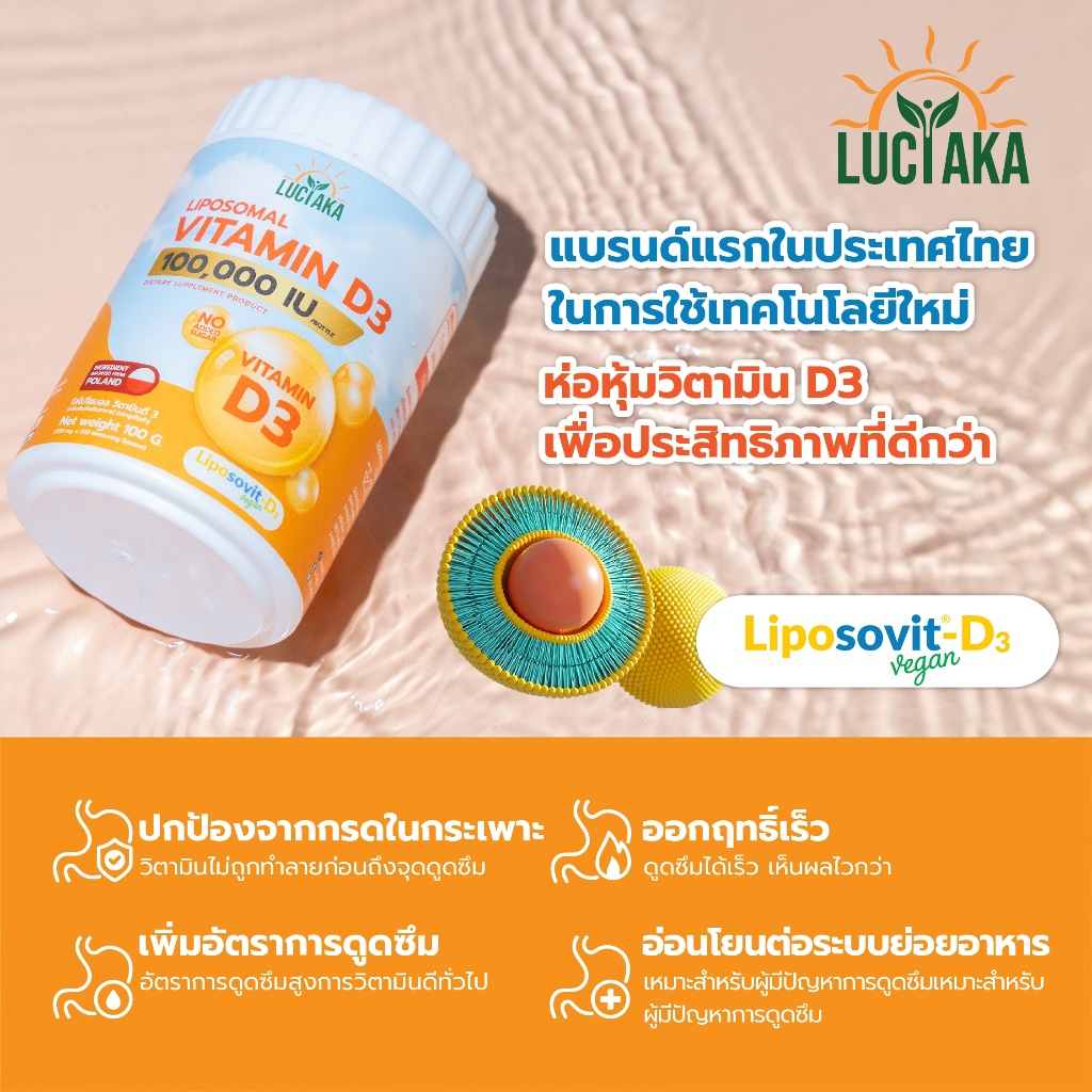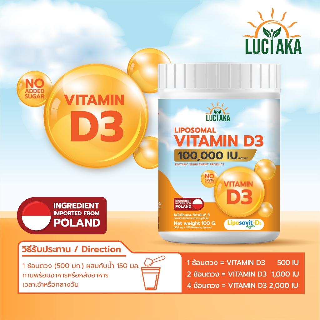 Luciaka Liposomal Vitamin D3 (100,000 IU) วิตามินดี3 ชนิดผง (1 ช้อน = 500 IU ทานได้ 200 ครั้ง)