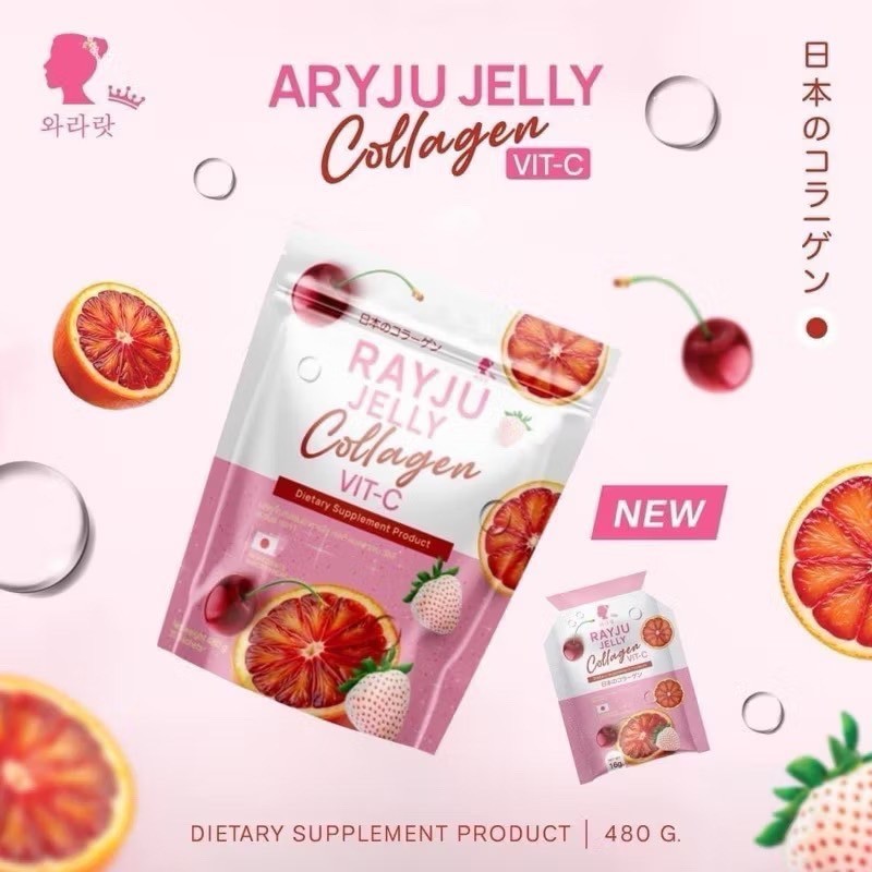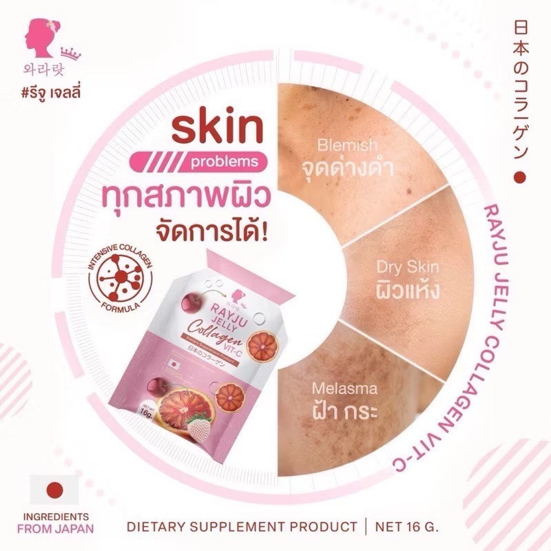 Rayju jelly Collagen รีจูเจลลี่คอลลาเจน วิตซี บำรุงเล็บผม กระดูก ช่วยให้ผิวกระจ่างใส --30 ซอง--✿