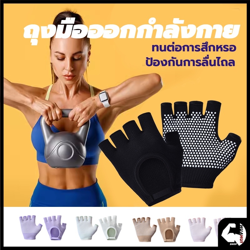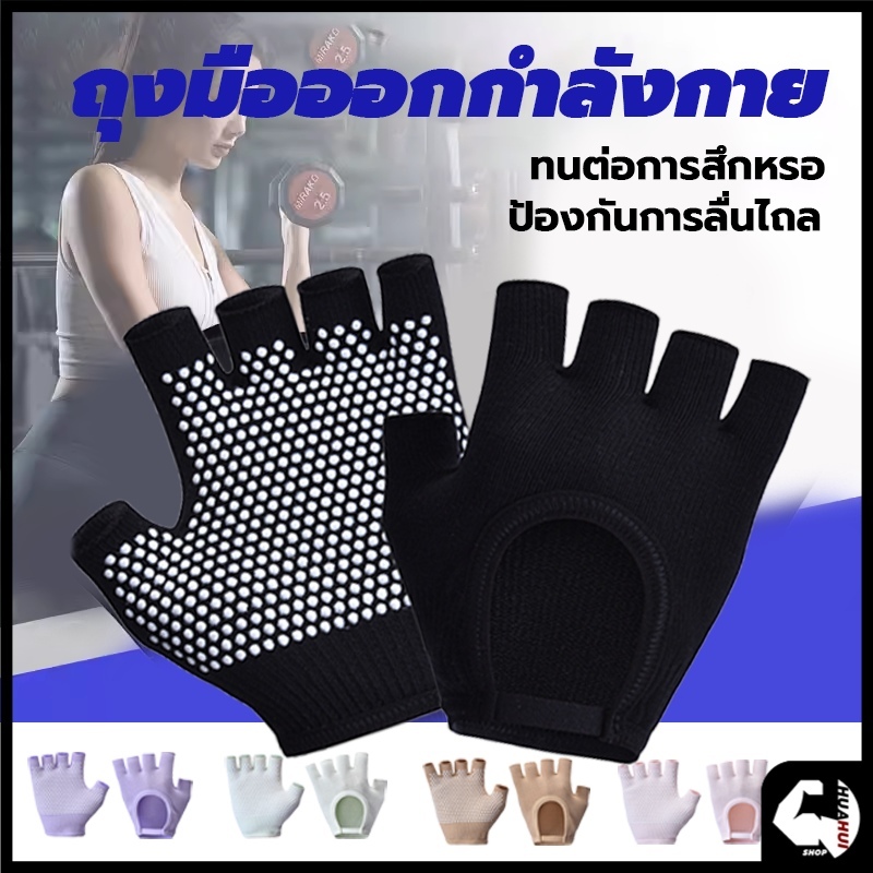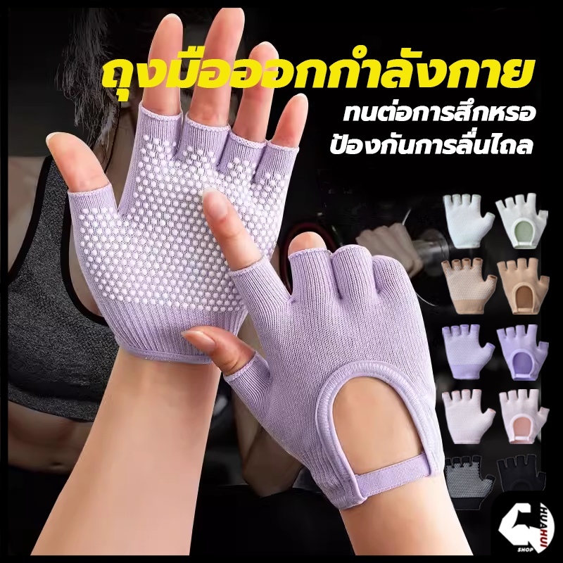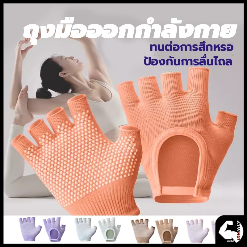 ถุงมือพิลาทิส หญิงถุงมือโยคะกันลื นผ ้าฝ ้ายฟิตเนสถุงมือครึ ่ จักรยานกลางแจ ้(Pilates Gloves)
