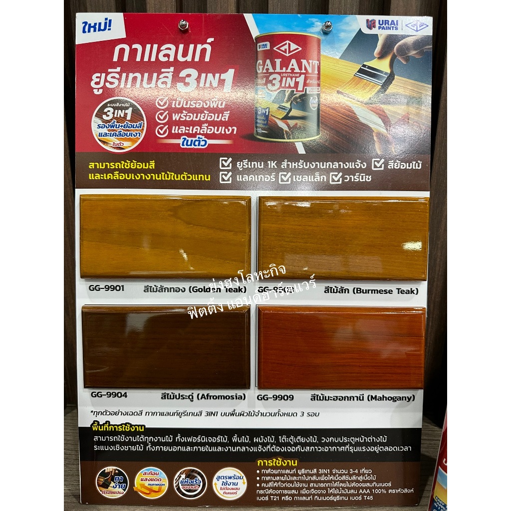 GALANT URETHANE 3in1 ยูรีเทน สีทาพื้นไม้ กาแลนท์ GG-9901 GG-9903 GG-9904 GG-9909 GG-9900 GM-9800 0.46 ลิตร