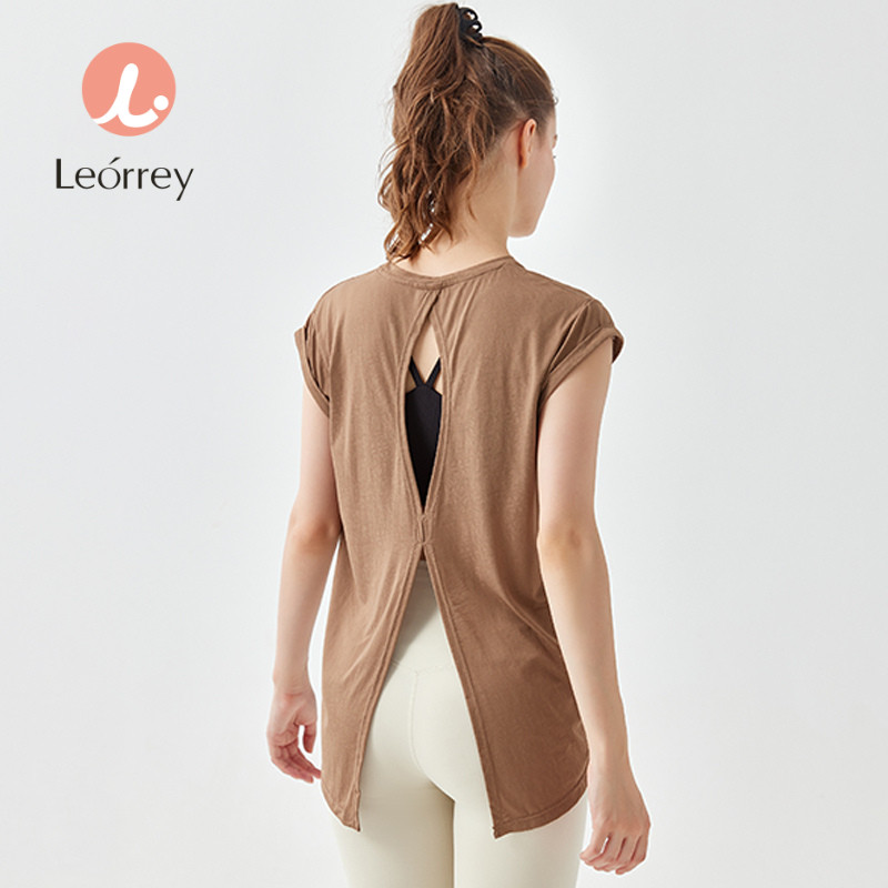 Leorrey-สะโพกขึ้นปกกีฬาแห้งเร็วท็อปส์เสื้อกันหนาวหมวกแขนสั้นโยคะสวมใส่หลวมออกกำลังกายวิ่งเสื้อยืด
