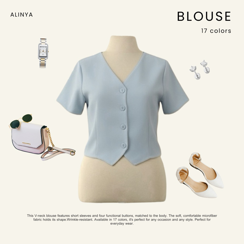 F004 | เสื้อเบลาส์ คอวี (ป้าย Alinya)