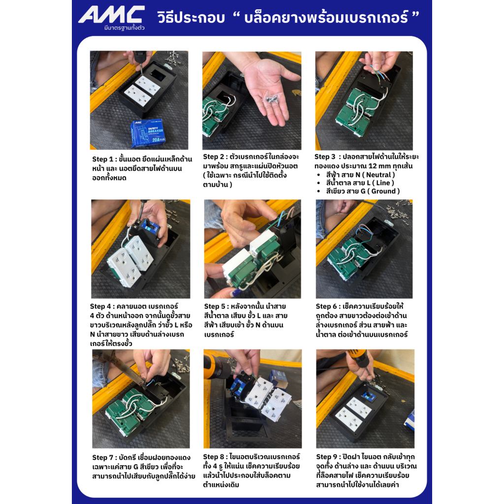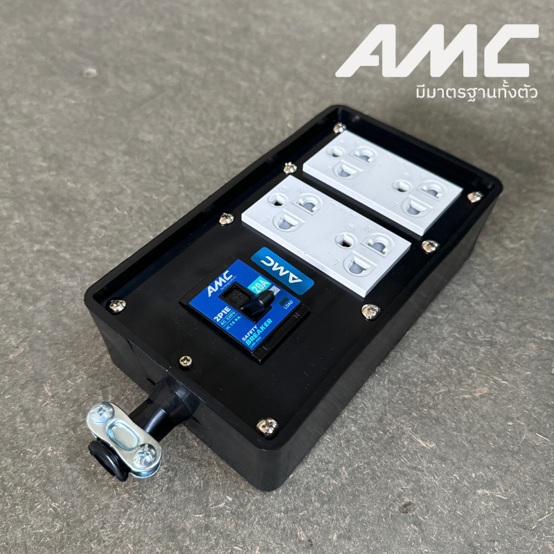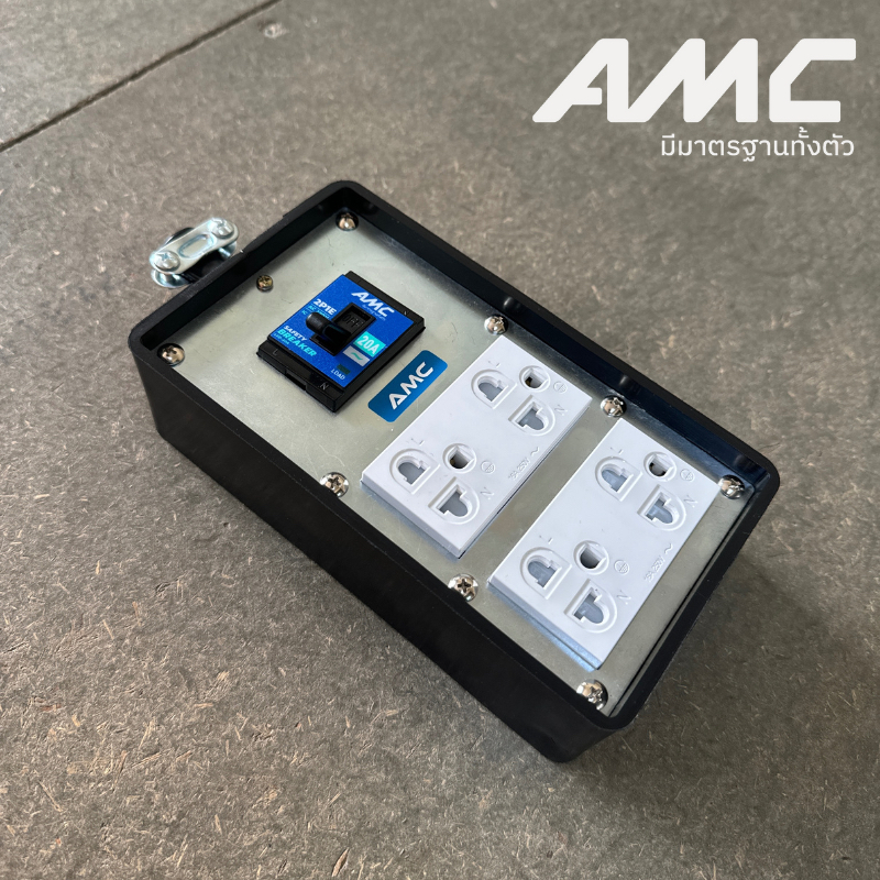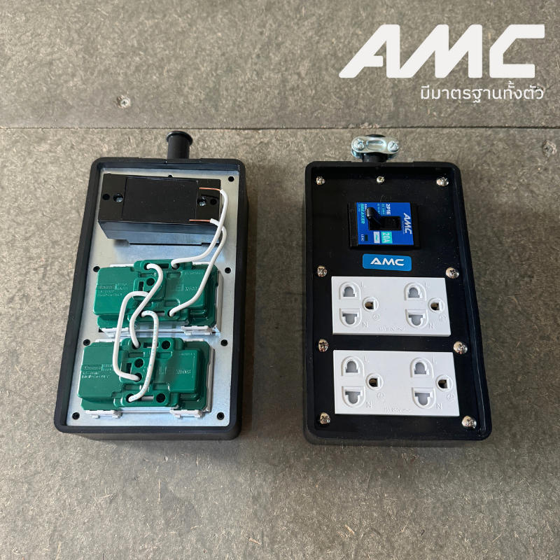 AMC ปลั๊กบล็อคยางเปล่า 4 ช่องเสียบ พร้อมเต้ารับกราวคู่ 16A เบกเกอร์ มีไฟ LED 20A รับประกัน 1ปี CK14XX