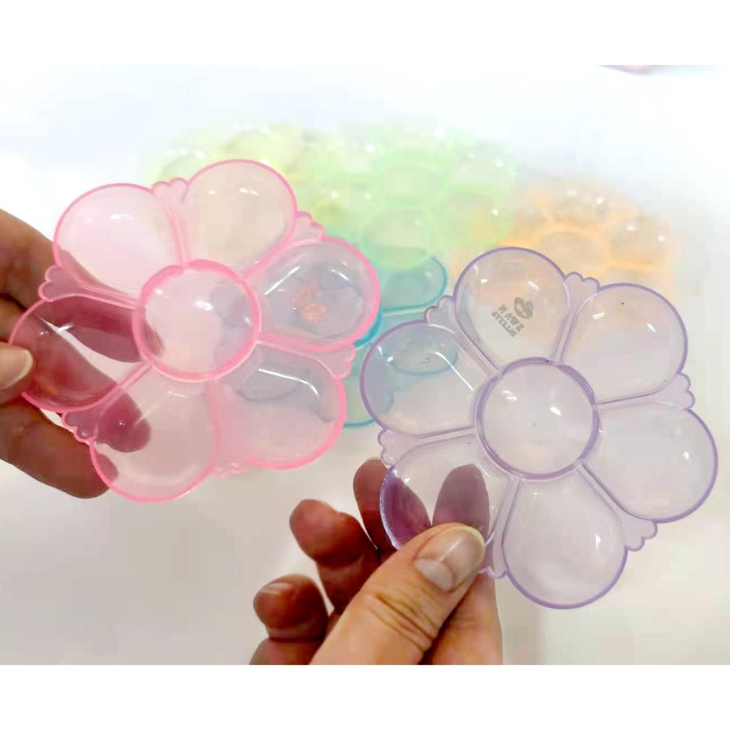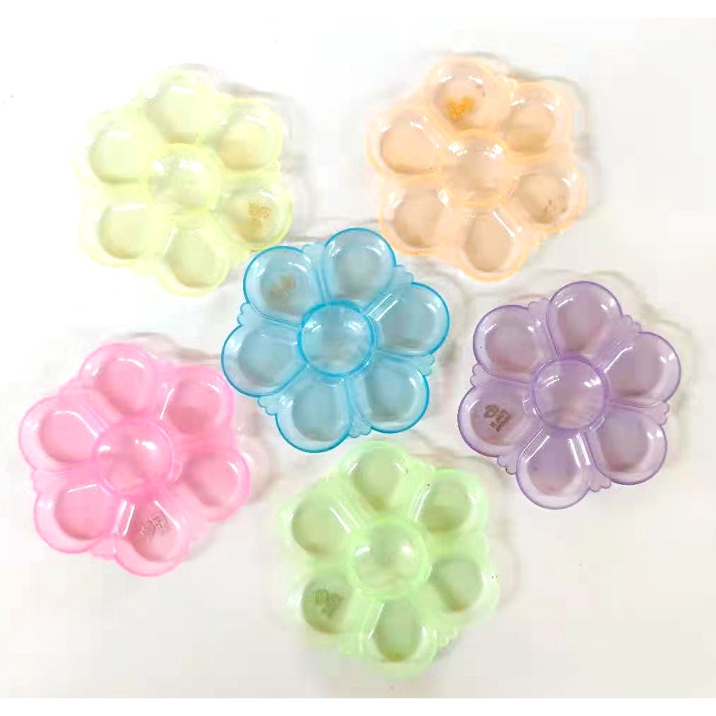 S0460 [รุ่นสีสดใส] จานสี พลาสติก รูปดอกไม้ 7 หลุม ถาดหลุม จานผสมสี ระบายสี เส้นผ่าศูนย์กลาง 10 ซม.
