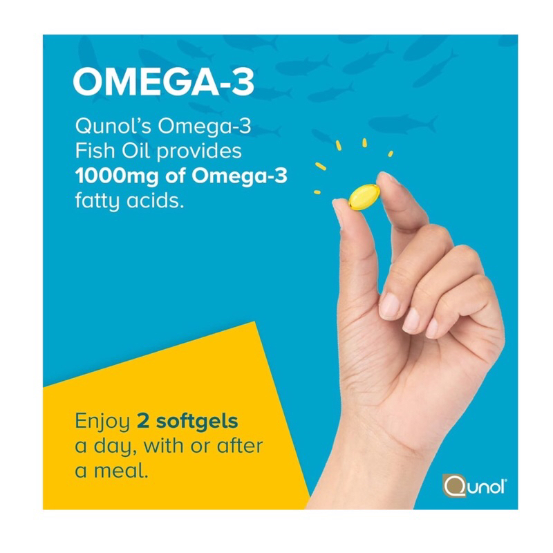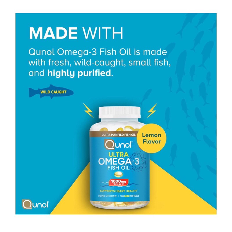 ( QUNOL )ULTRA OMEGA-3 FISH OIL 1000 MG ( รสมะนาว )- บำรุงสุขภาพหัวใจ สุขภาพสมอง(180ซอฟ์ทเจล)นำเข้าจากอเมริกา