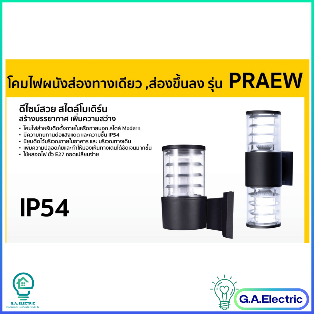 LAMPO โคมติดผนัง แลมโป้ แบบส่องทางเดียว และส่องขึ้นลง ขั้วE27 รุ่น PRAEW โคมภายนอก สีดำ ไม่รวมหลอดไฟ