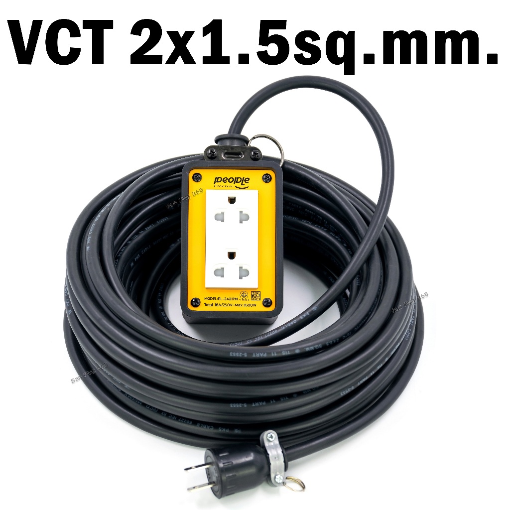 People ปลั๊กพ่วง 2x4 ปลั๊กกราวด์คู่ 2 ช่องเสียบ มีม่านนิรภัย พร้อมสาย VCT 2x1.5 sq.mm. 15-30 เมตร