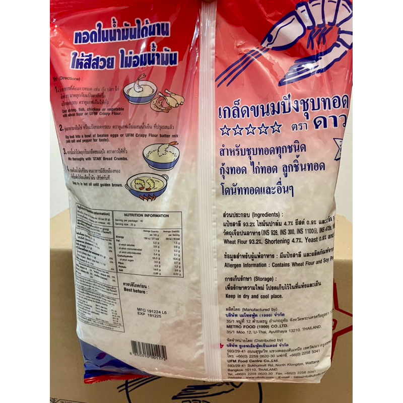 เกล็ดขนมปัง เกล็ดขนมปังชุบทอด ตรา ดาว 1 กก. X 10 (ยกลัง)