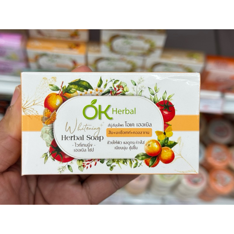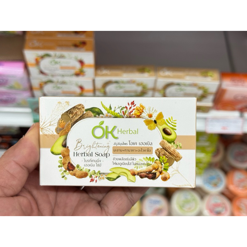 ❇️OK Herbal สบู่สมุนไพร โอเคเฮอเบิล ไวท์เทนนิ่ง/ไบรท์เทนนิ่ง เฮอเบิล โซป >2สูตร>>2 ขนาด [70 กรัม/130 กรัม]