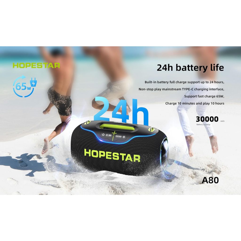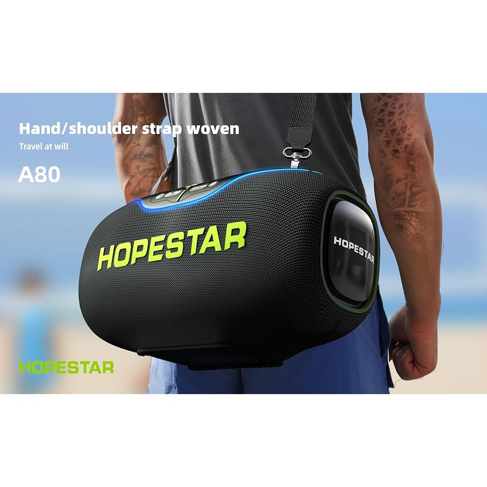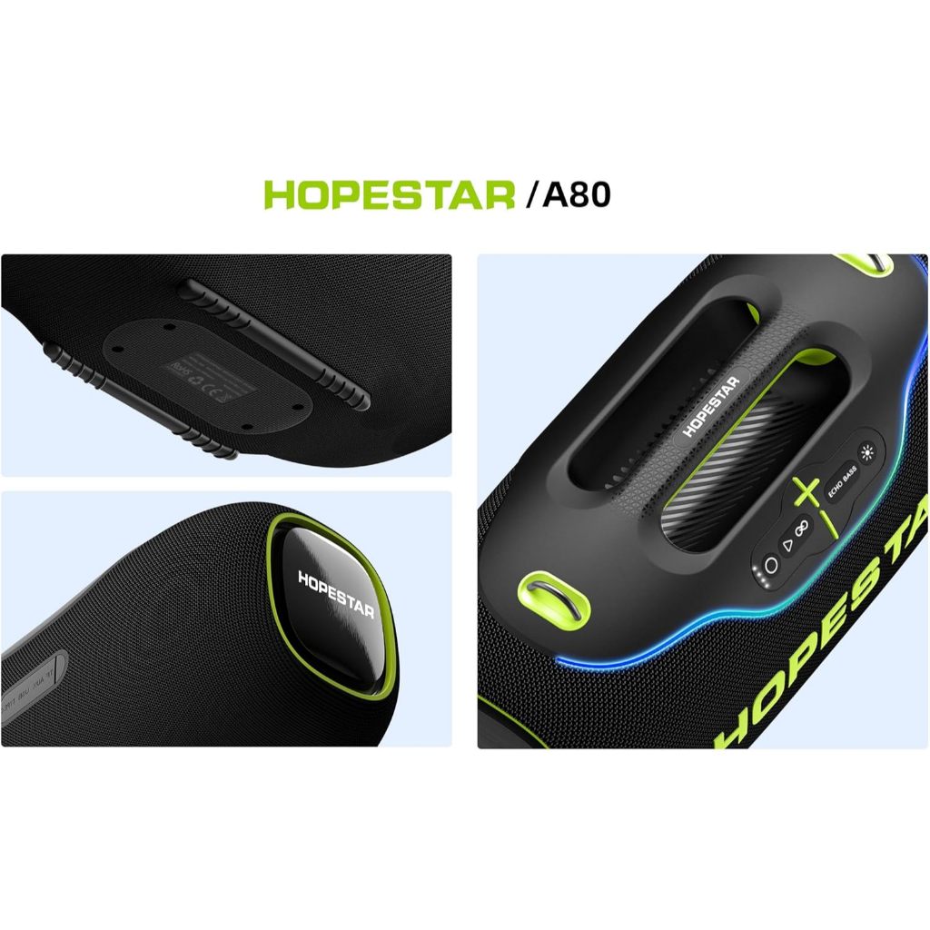 Hopestar A80 ลำโพงบลูทูธ 350วัตต์ พร้อมไมค์ลอย1อัน ลำโพง6ดอก มีไฟRGB ปรับเบส3โหมด ของแท้100%