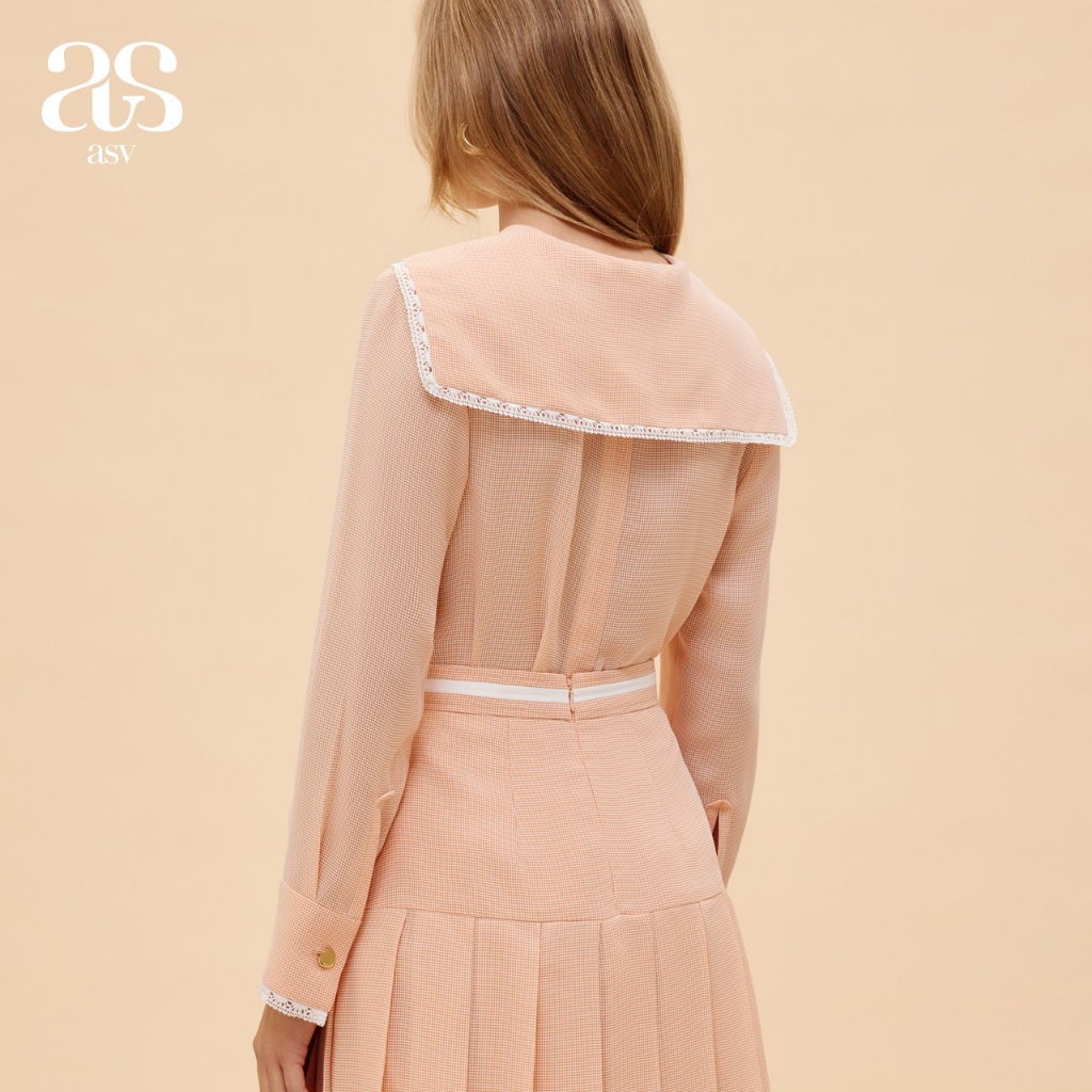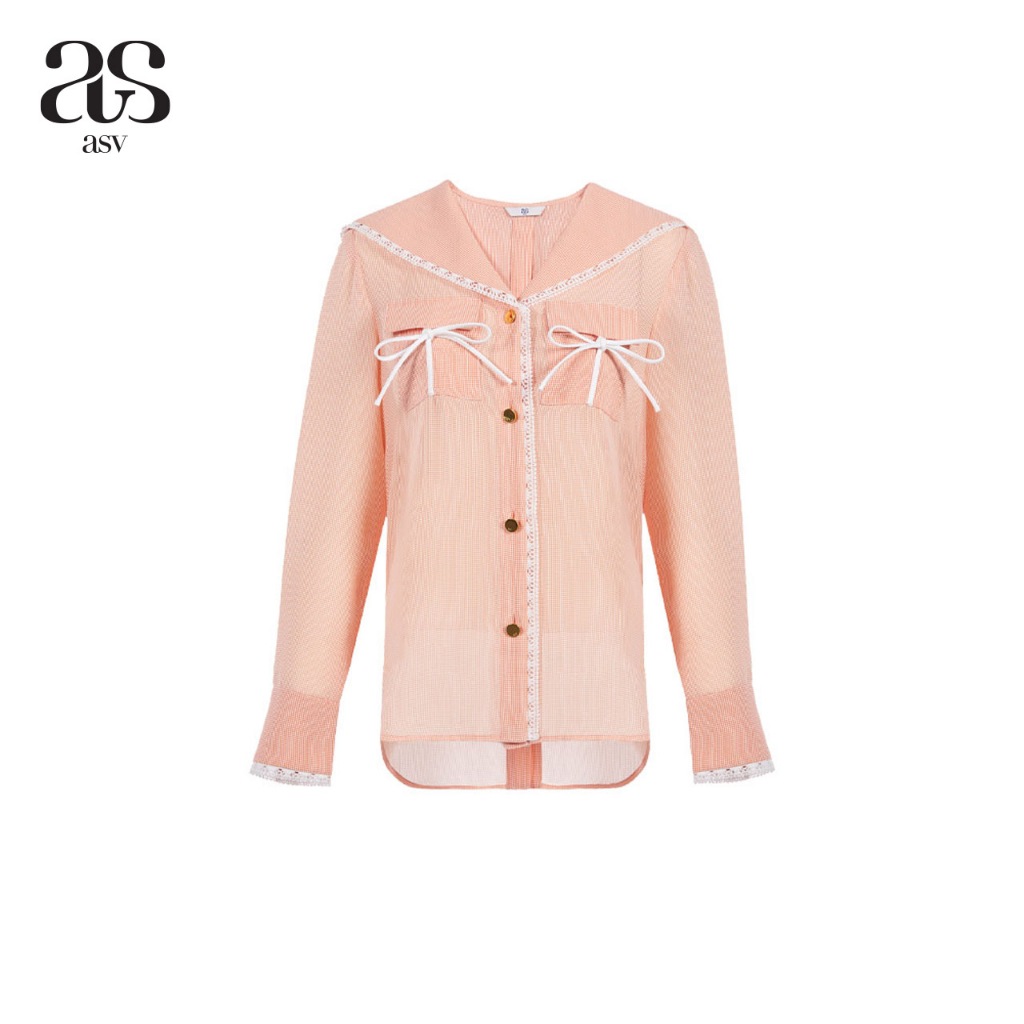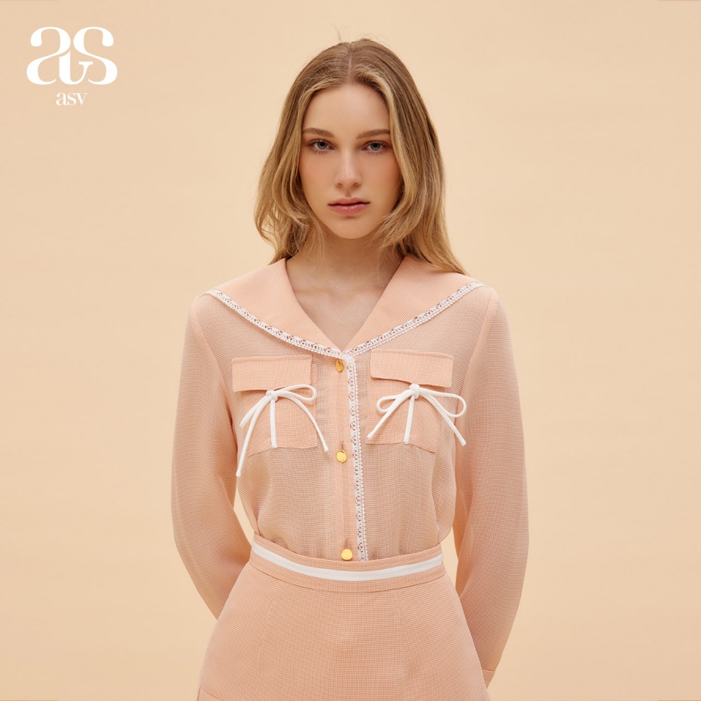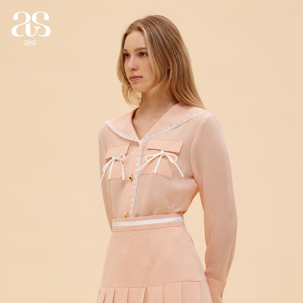 [asv ss24] Thumbelina Bowie Shirt เสื้อผู้หญิง แขนยาว คอปกกะลาสี แต่งกระเป๋าผูกโบว์ด้านหน้า ตกแต่งแถบผ้าลูกไม้