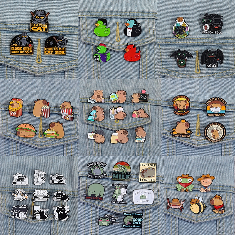 2-6ชิ้นสัตว์น่ารักชุดเข็มกลัดชุดตลกกบแมว คาปิบาระ เข็มกลัดป้ายโลหะกระเป๋าเป้สะพายหลังเครื่องประดับของขวัญสําหรับเพื่อน