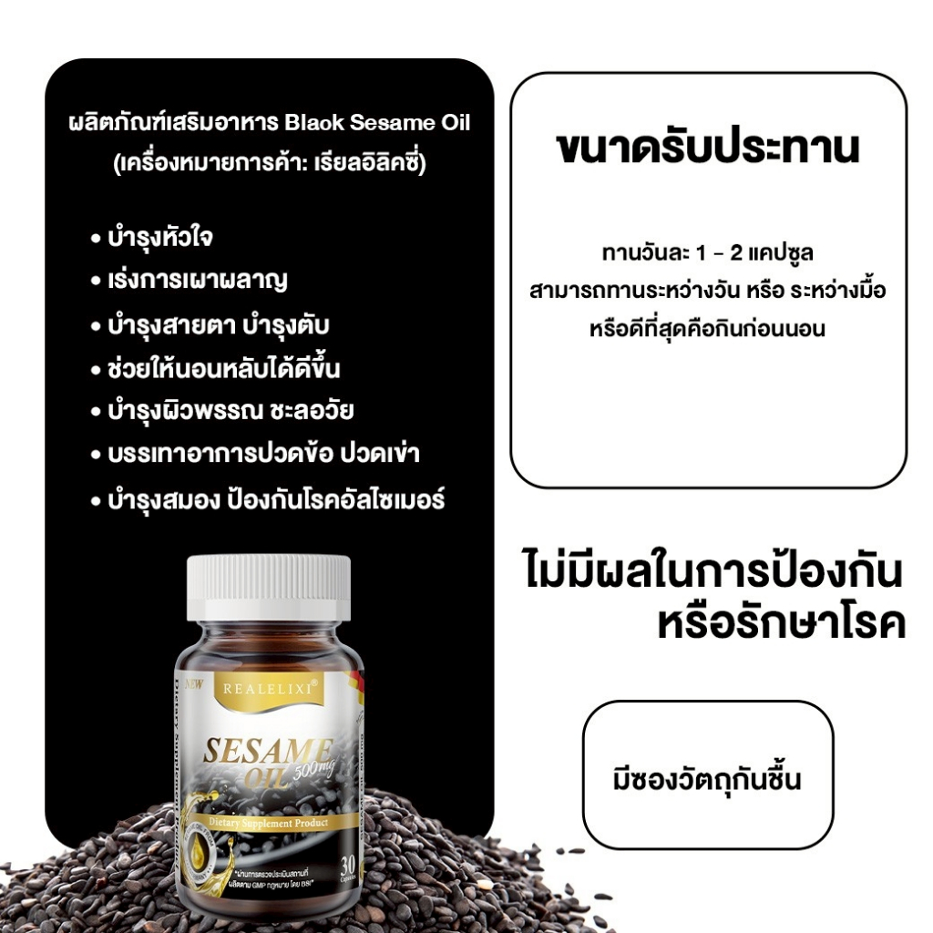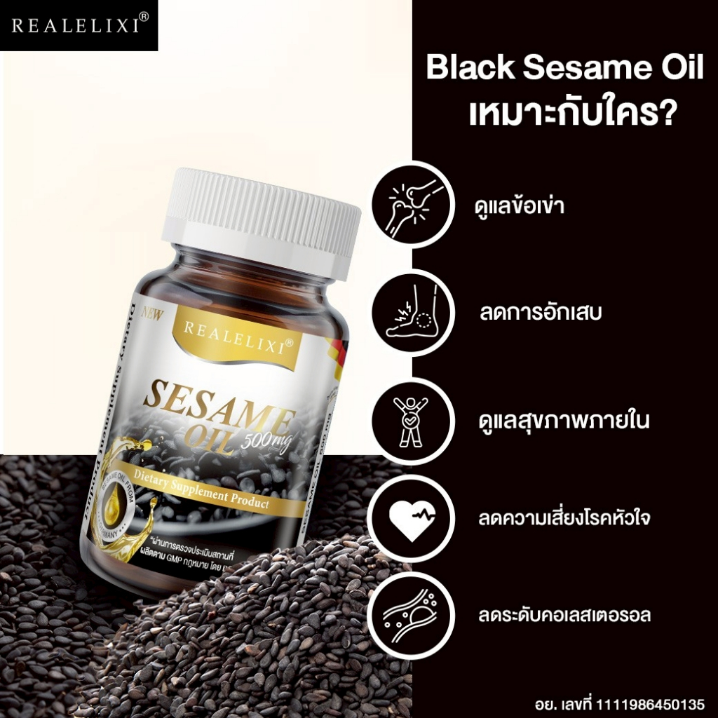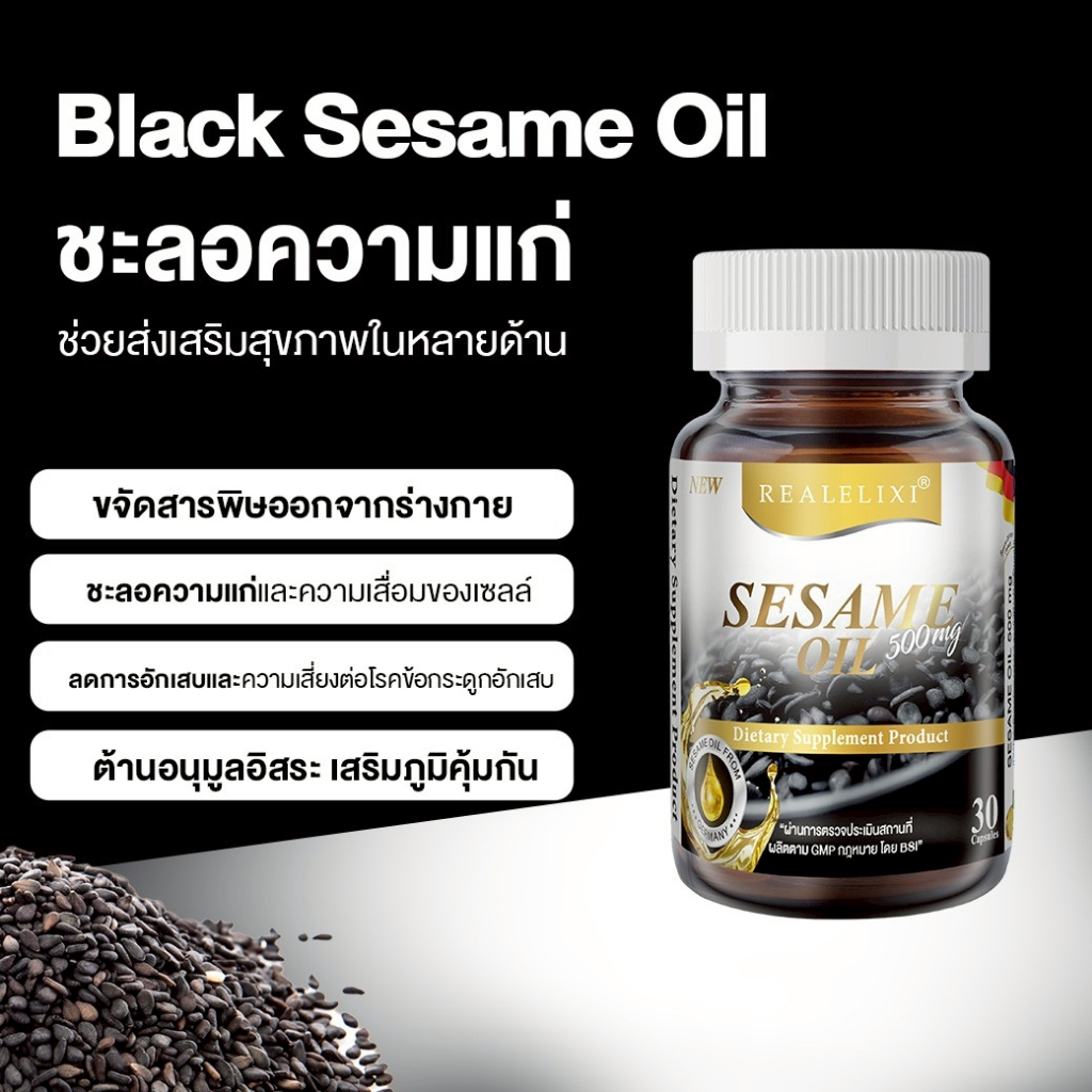 [โปร 2 ขวด] Real Elixir Black Sesame Oil 500 mg. น้ำมันงา (30เม็ด)