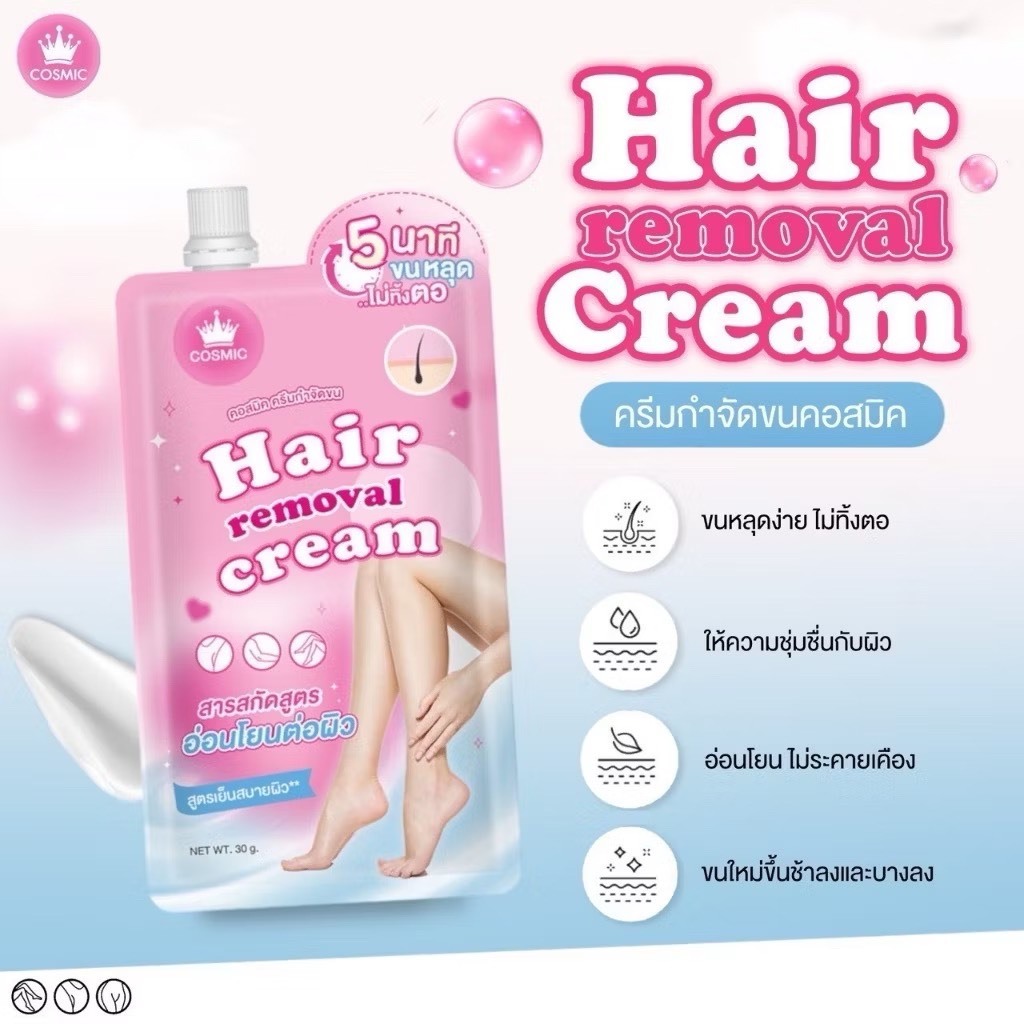 ของแท้/ถูกที่สุด/ไลฟ์ทุกวัน🔥(1ซอง) COSMIC Hair Remover ครีมกำจัดขนแบบซอง เนื้อนุ่ม อ่อนโยน