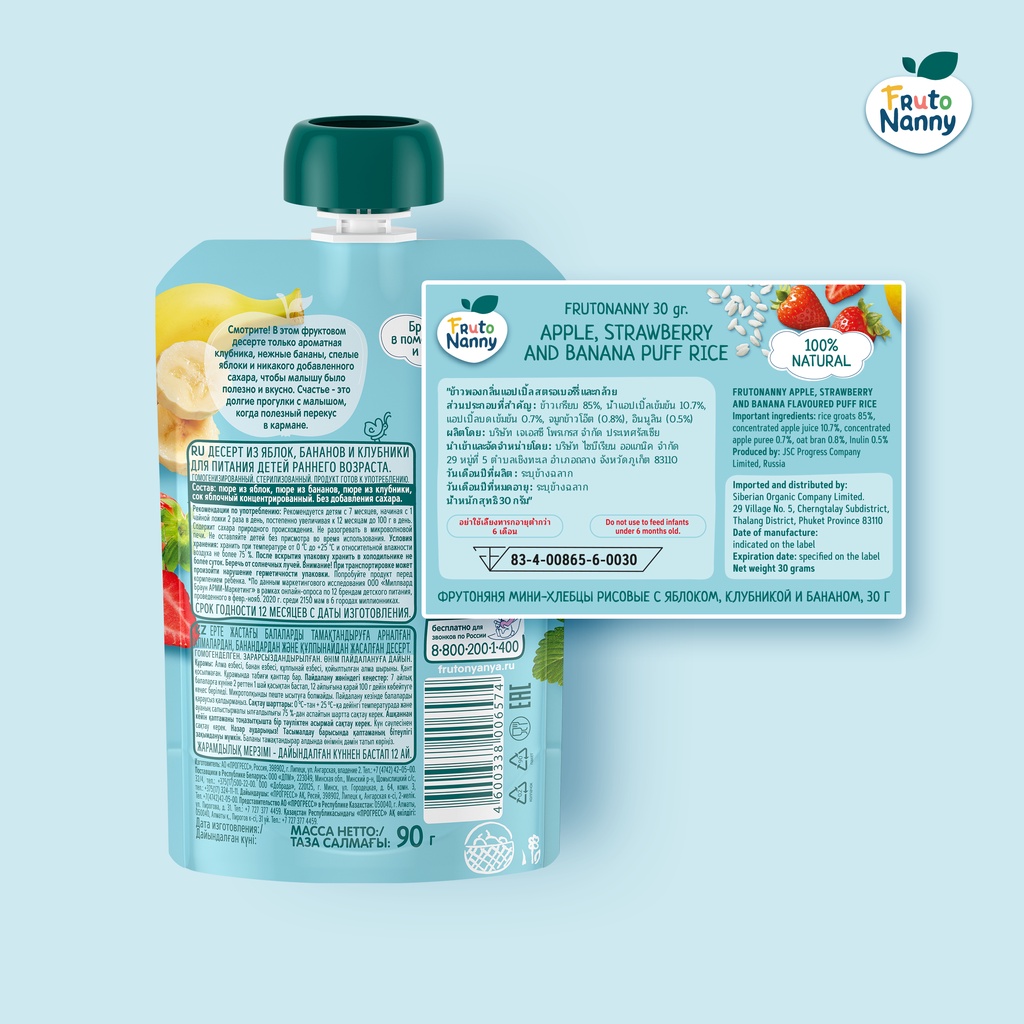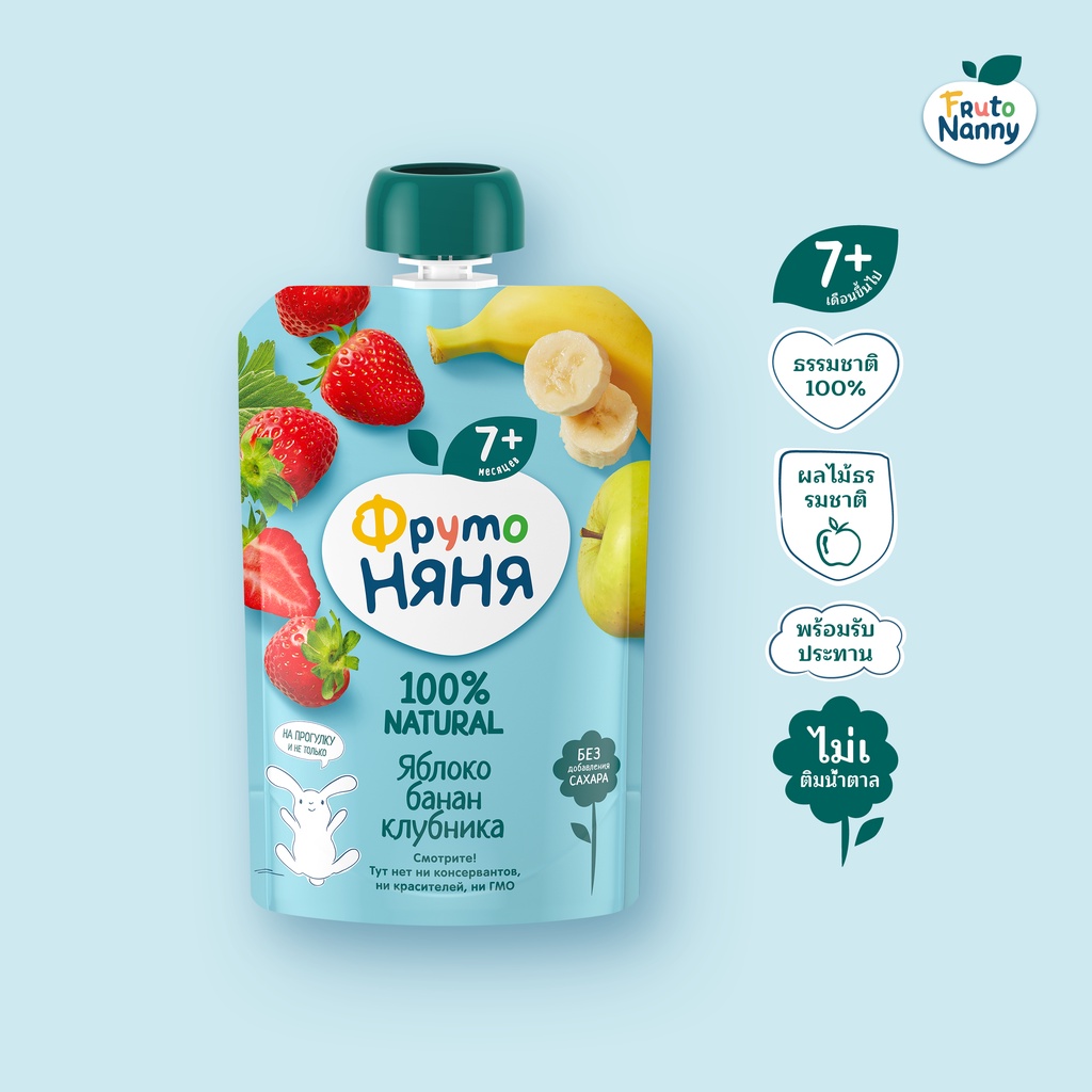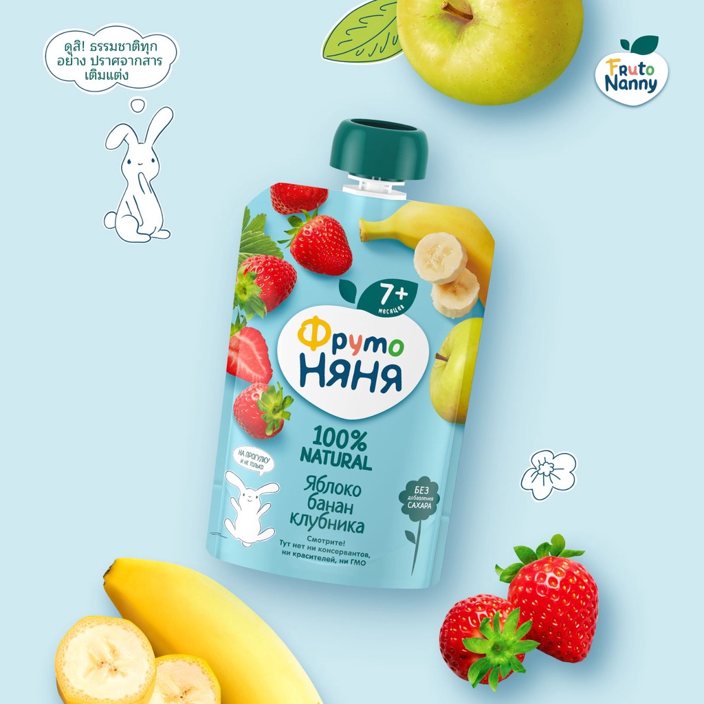 FrutoNanny Puree | เพียวเร่เด็ก 100% ธรรมชาติ แอปเปิ้ล กล้วย สตรอว์เบอร์รี่ ไม่มีน้ำตาล