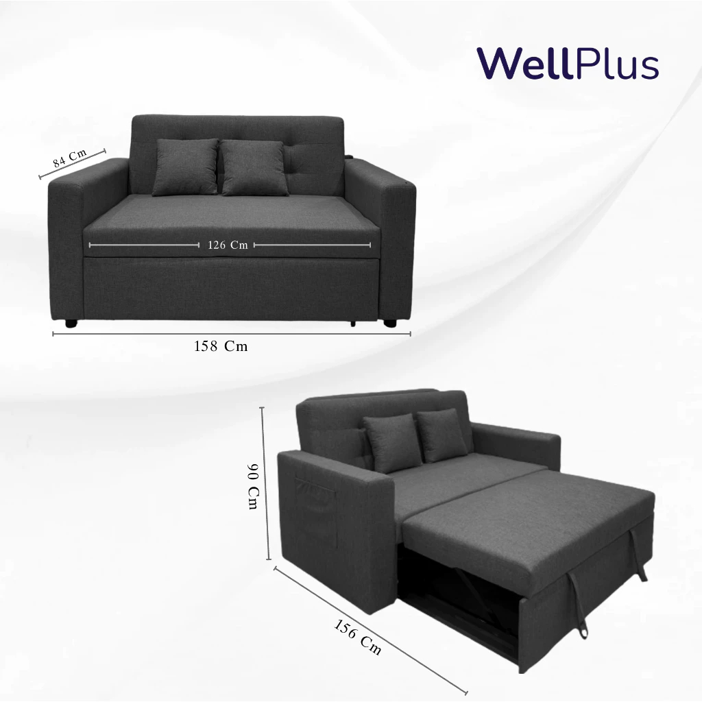 WellPlus โซฟาผ้าเบด Spaco 2ที่นั่ง สามารถดึงปรับนอนได้ เนื้อผ้าหุ้มระบายอากาศได้ดี แข็งแรงทนทาน ใข้งานได้ยาวนาน