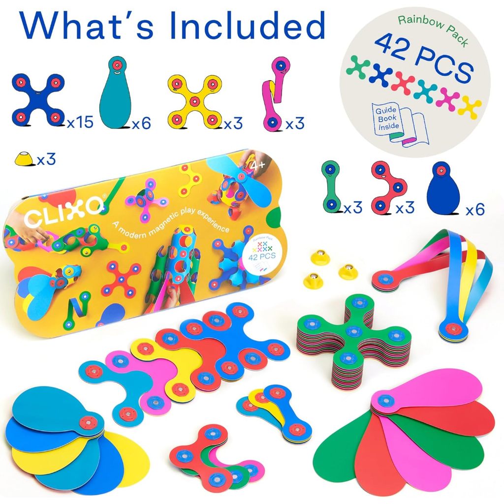 Clixo Rainbow Pack - - ของเล่นตัวต่อแม่เหล็กรูปแบบใหม่จาก USA : เหมาะสำหรับอายุ 4 ปีขึ้นไป