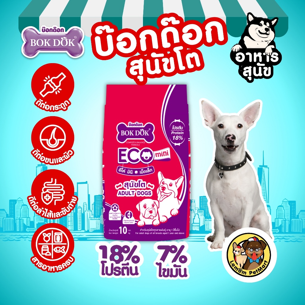 (กระสอบ 10 KG.) อาหารเม็ดสุนัข BOKDOK (FT45) เม็ดเล็ก โปรตีน18% ดีต่อกระดูกและข้อ ขนสวยผิวดี