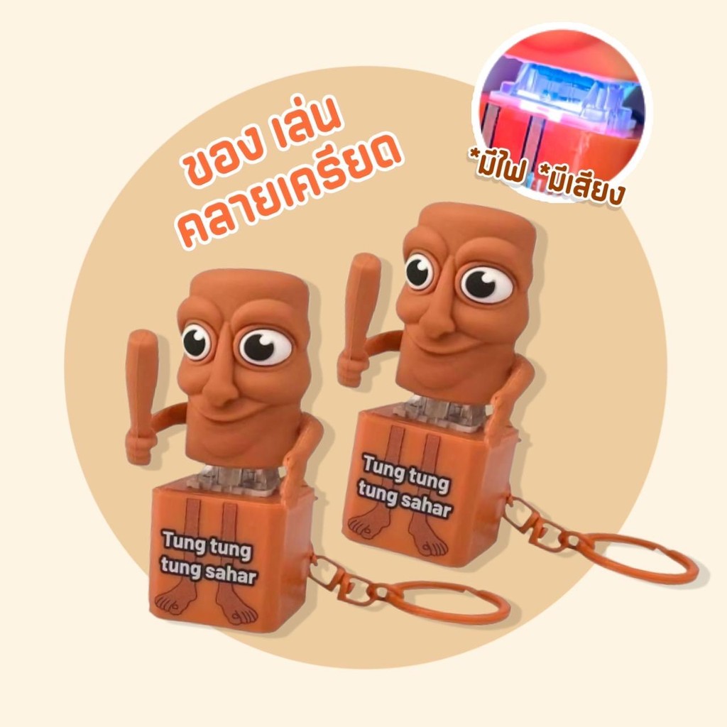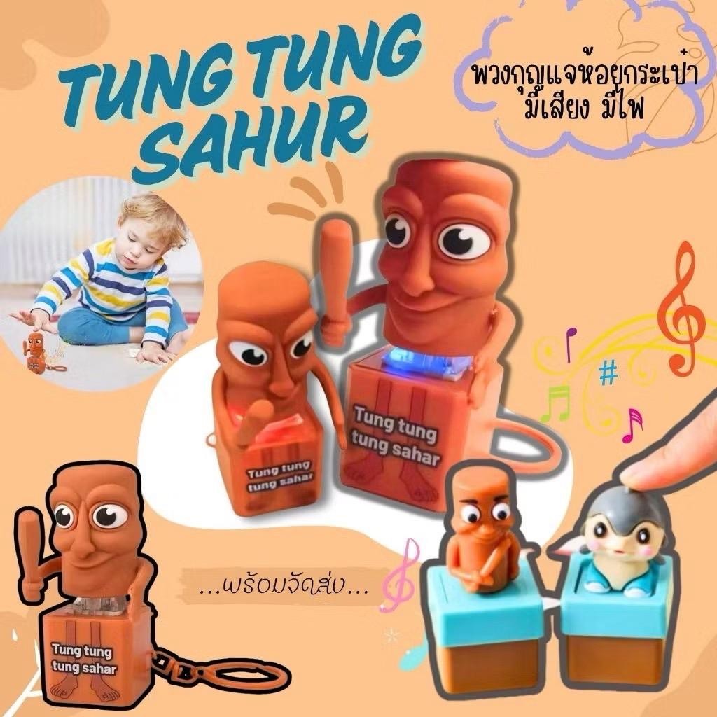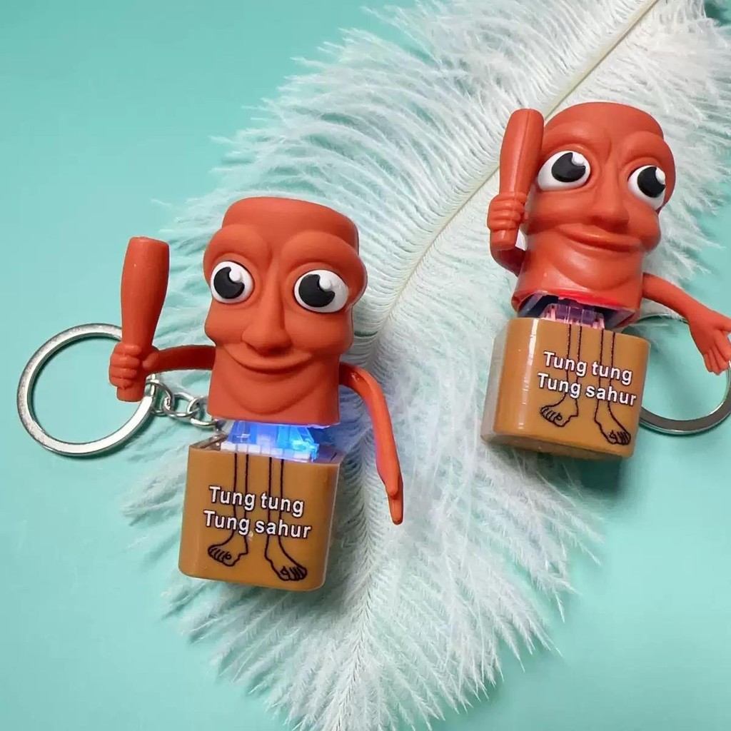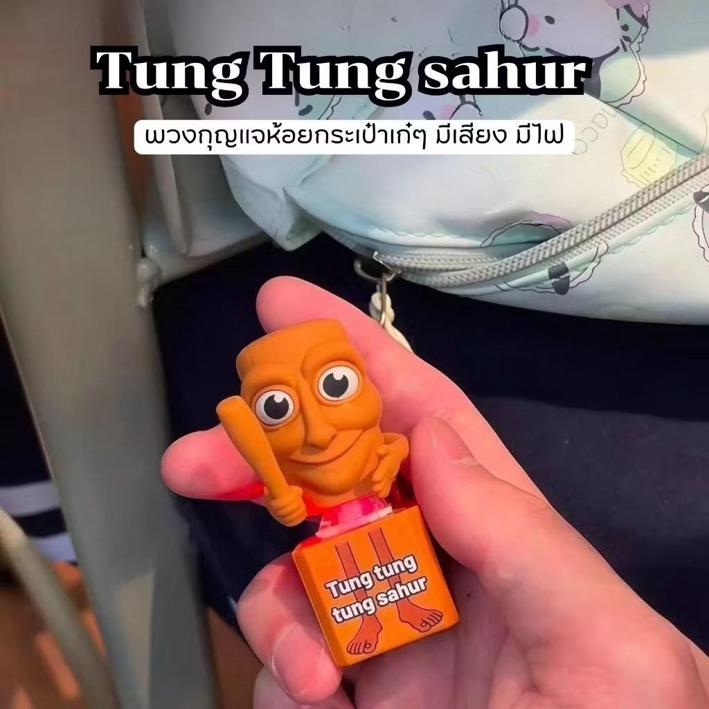 FY พวงกุญแจ Sahur พวงกุญแจมีเสียงTung Tung มีไฟส่องสว่าง พวงกุญแจ 3D ห้อยกระเป๋า