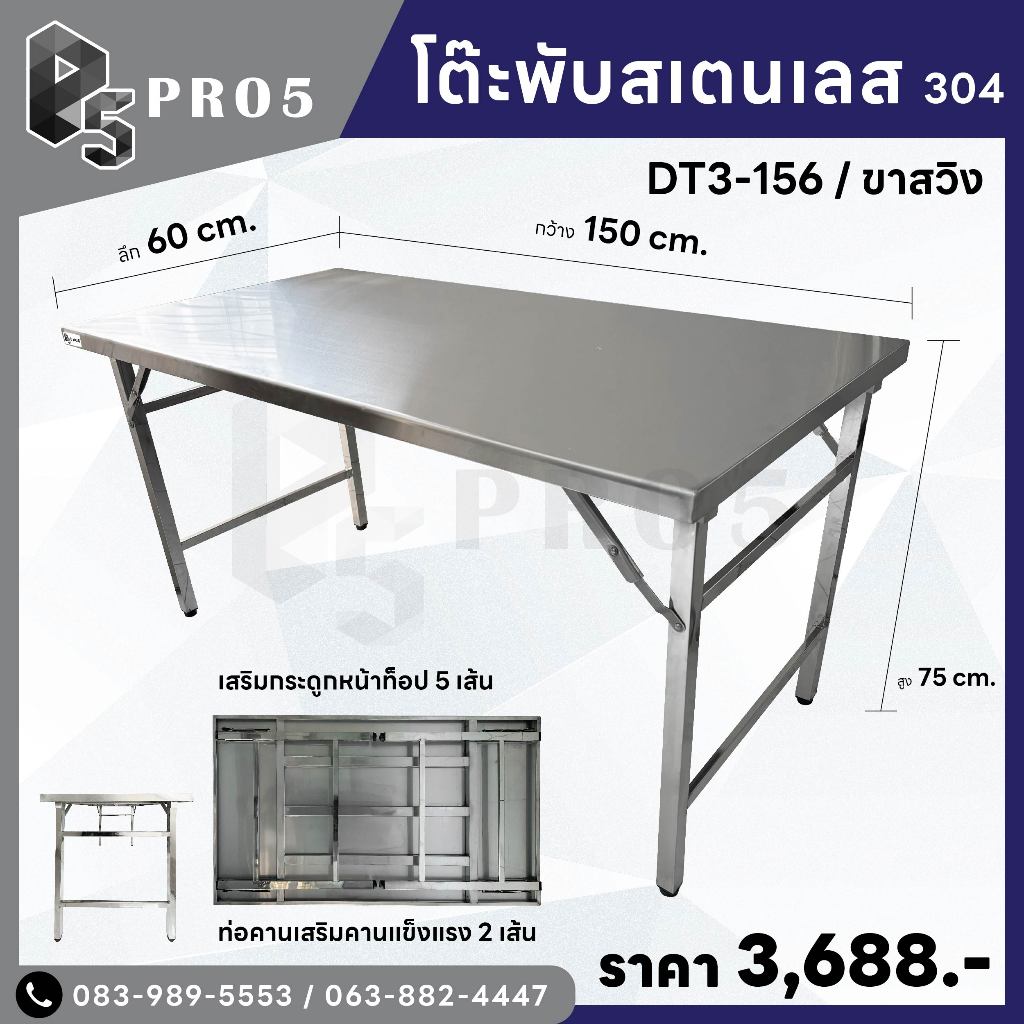 Pro5 - โต๊ะพับสแตนเลส 1.5 1.8 เมตร แข็งแรง ทนทาน มีทั้ง 201 และ 304