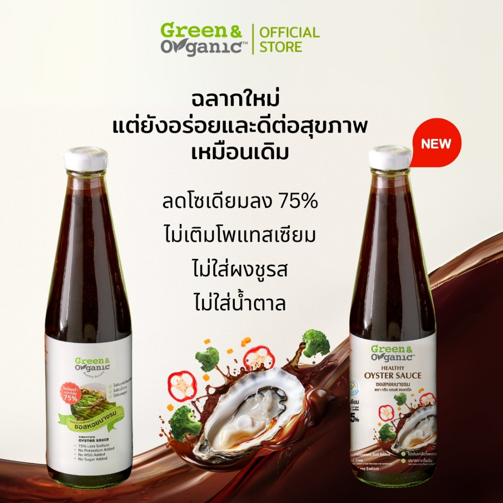 Green&Organic เซทA22 ชุดเครื่องปรุงทำอาหารโซเดียมต่ำ ชุดคู่ครัว ซอสหอย ซีอิ๊ว น้ำปลา โซเดียมต่ำ