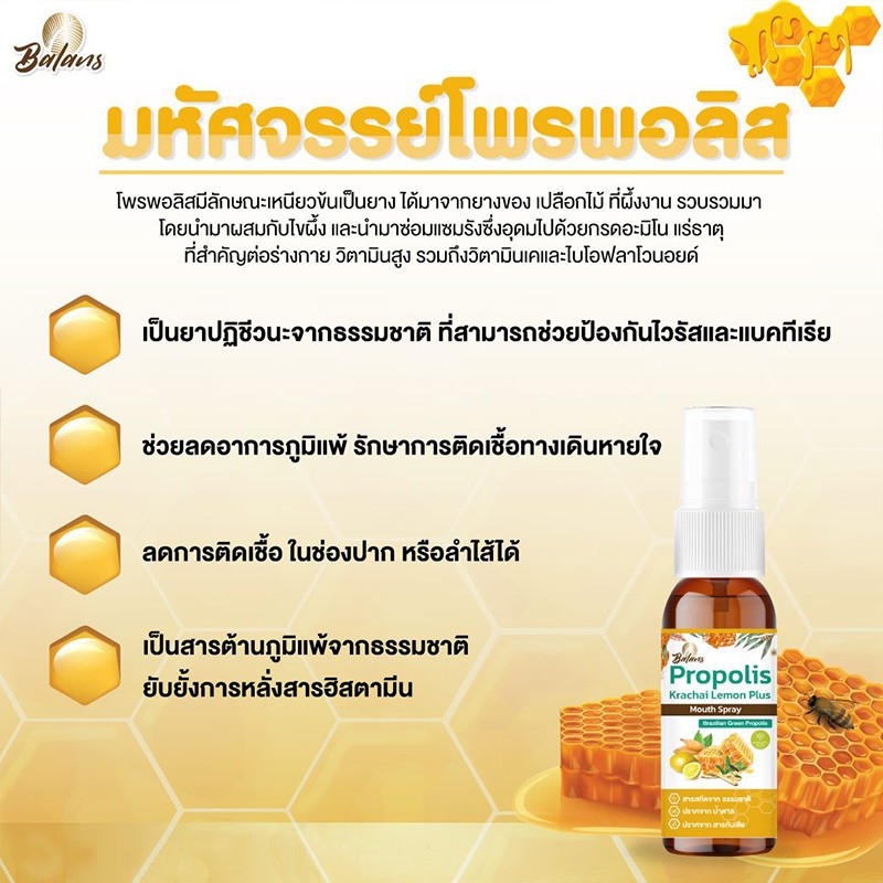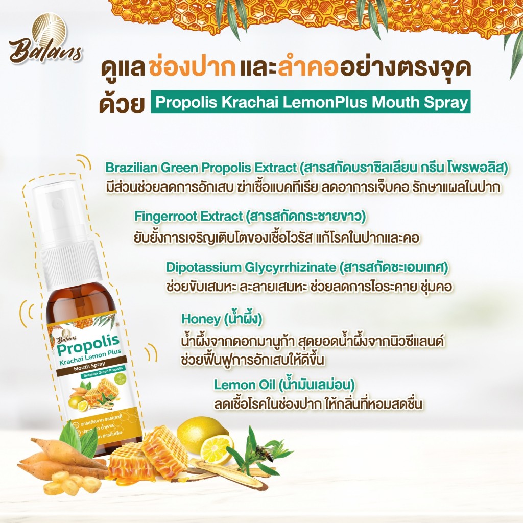 บาลานส์ โพรพอลิส กระชาย เลม่อน พลัส เม้าท์ สเปรย์ 20 มิลลิลิตร ป้องกันแบคทีเรีย ไวรัสในช่องปาก และลำคอ