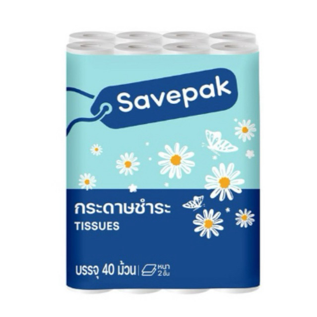 กระดาษชำระ เซพแพ็ค Savepak หนา2 ชั้น 40 ม้วน.ผลิตจากเยื่อกระดาษบริสุทธิ์
