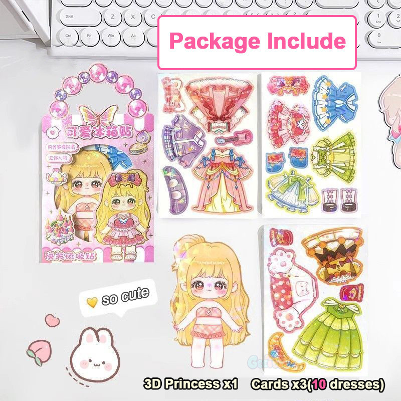 GeeToy DIY ตู้เย็นสติกเกอร์แม่เหล็กของเล่นการ์ตูนเจ้าหญิงแต่งตัวสติกเกอร์ 10 ชุดชุดของเล่นทํามือสําหรับเด็ก
