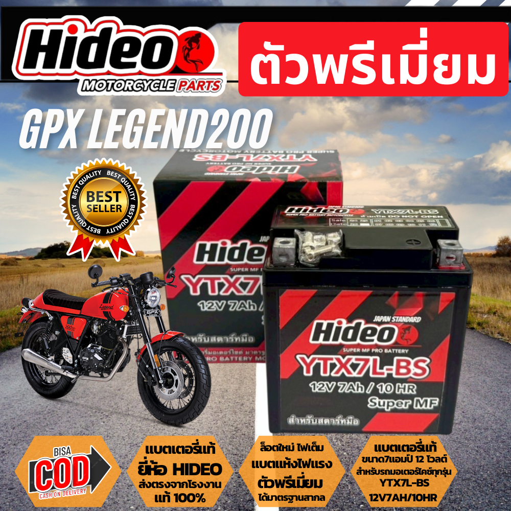 แบตเตอรี่ GPX LEGEND200 แบตเตอรี่ จีพีเอ็กซ์ ลีเจ้นท์200 YTX7L-BS กำลังไฟ12V 7Ah
