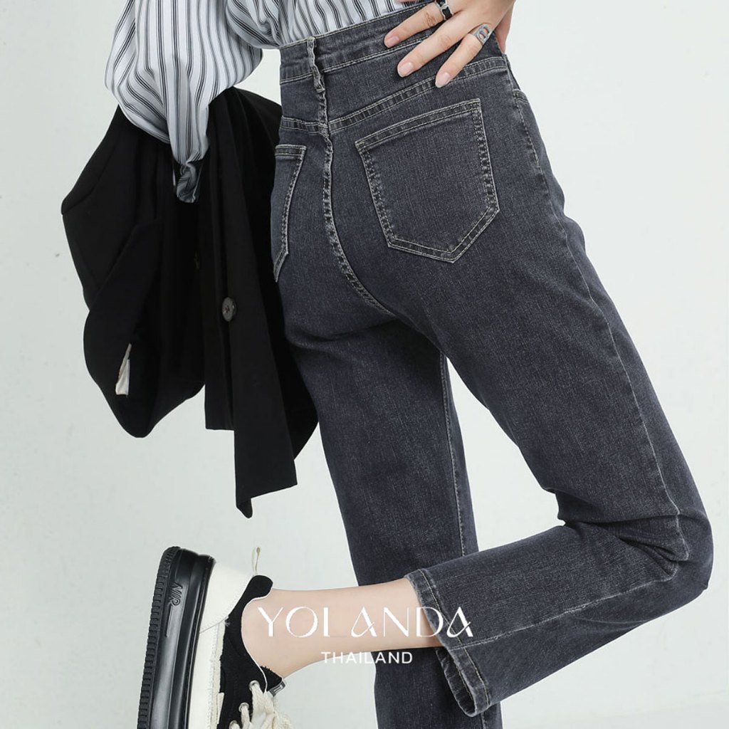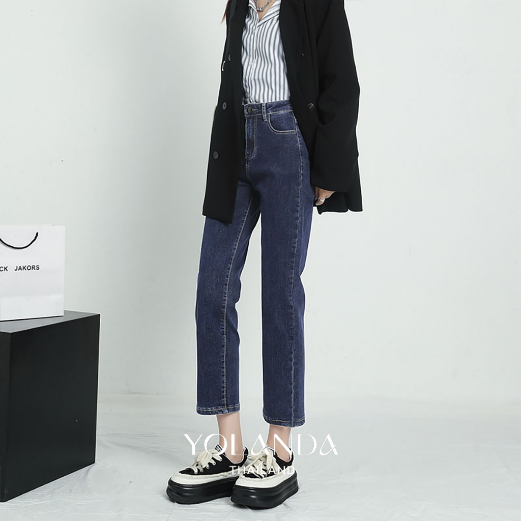 【SAT】Yolanda กางเกงยีนส์ ยีนส์ขากระบอก ทรงบอย ยีนส์เอวสูง กางเกงผู้หญิง สไตล์เกาหลี แมทง่าย ใส่ได้กับทุกลุค FF1105