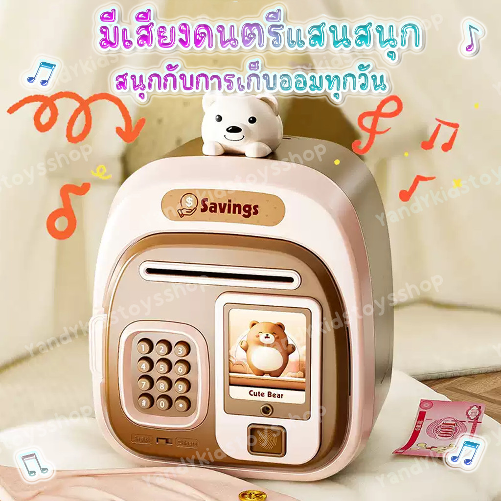 พร้อมส่งในไทย กระปุกออมสิน ATM มีดนตรีมีรหัส/จำลองลายนิ้วมือ ตู้เซฟใส่แบงค์สามารถหยอดเหรียญได้