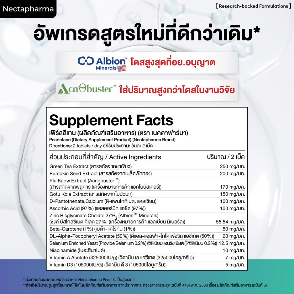 [4 ขวด ลดเพิ่ม 360 บ.] Nectapharma Pearletane เพิร์ลลีเทน วิตามินสวบสิว กู้หน้าสิว บิ๊วหน้าใส วิตามินลดสิว ซิงค์ลดสิว