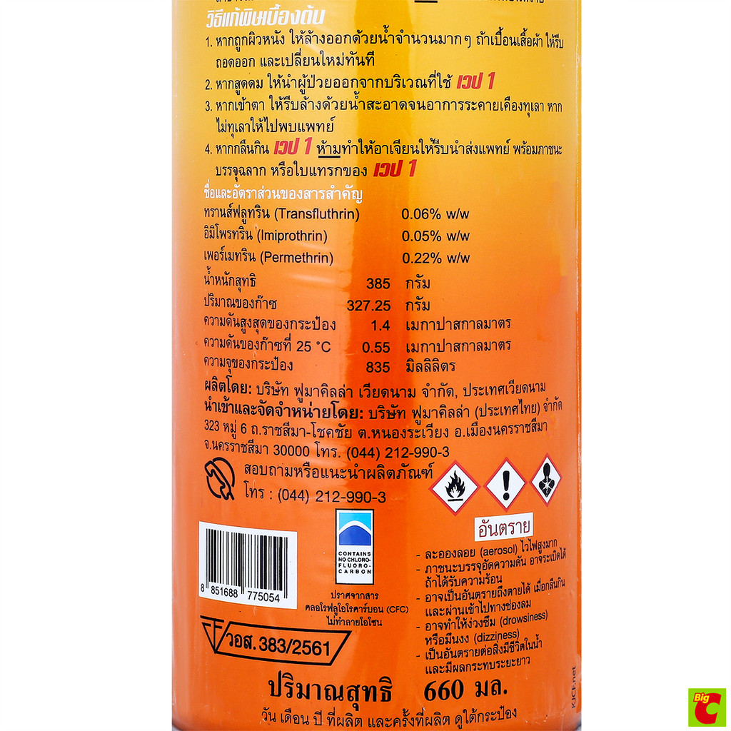 เวป แอโรซอล1สเปรย์กำจัดยุงมดแมลงสาบ 600 มล.