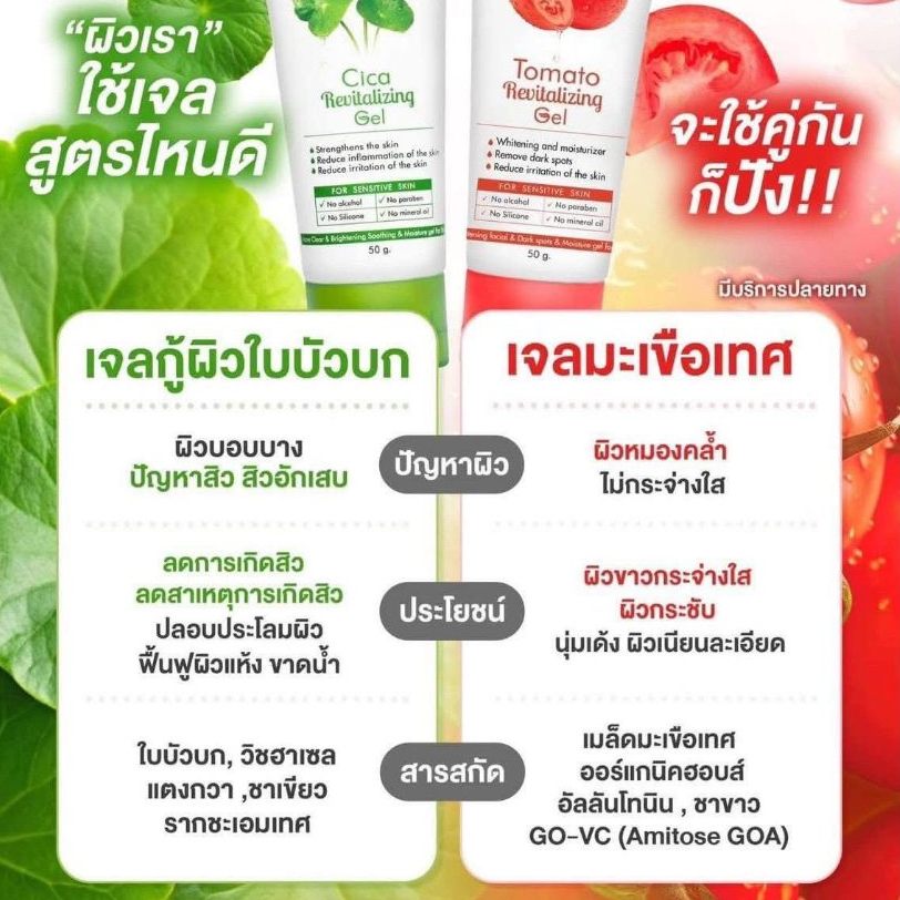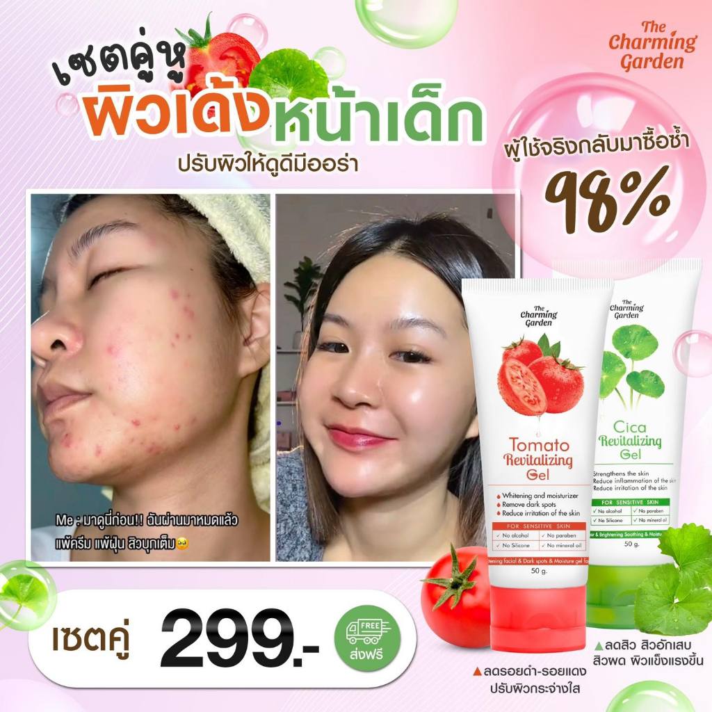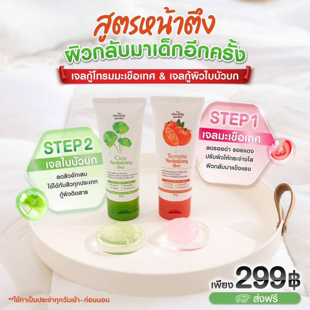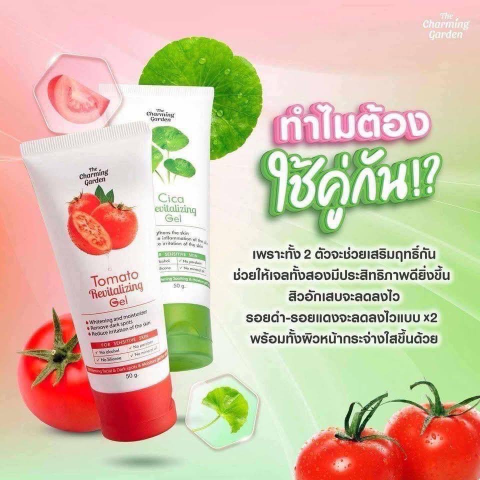 [ส่งฟรี ซื้อในไลฟ์ลด50%ของแท้]เซ็ตคู่เจลใบบัวบกและเจลมะเขือเทศ เดอะ ชาร์มมิ่ง The Charming Cica Gel
