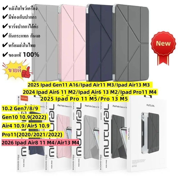 Mutural เคสไอแพด Air8/A16/Air11/Air13/Pro11/13/10.9/10.2/Gen10/11 รุ่น Qingya พับตั้งได้3แบบ พร้อมช่องปากกาพร้อมชาร์จใช้