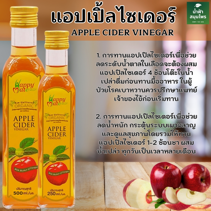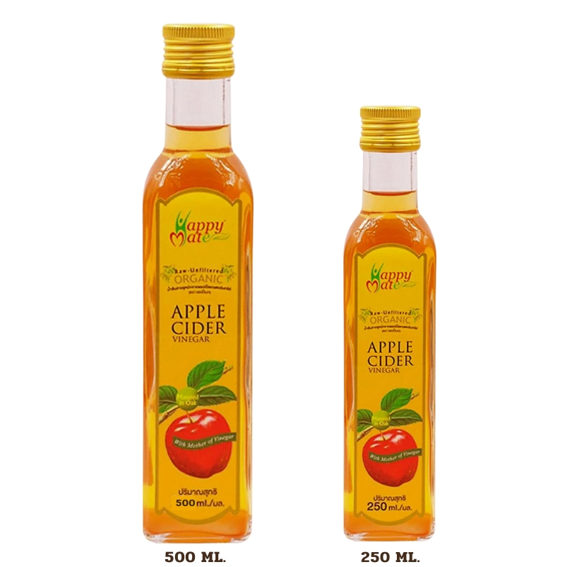 Apple Cider Vinegar with the mother ACV แอปเปิ้ลไซเดอร์ ออร์แกนิค HappyMate ขนาด250มล.และ500มล.